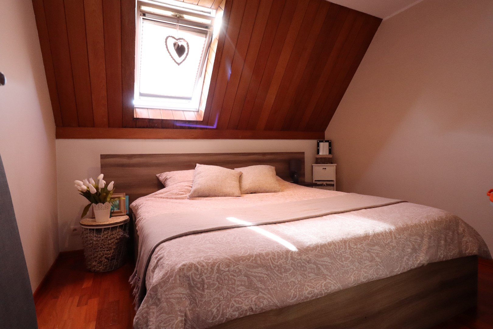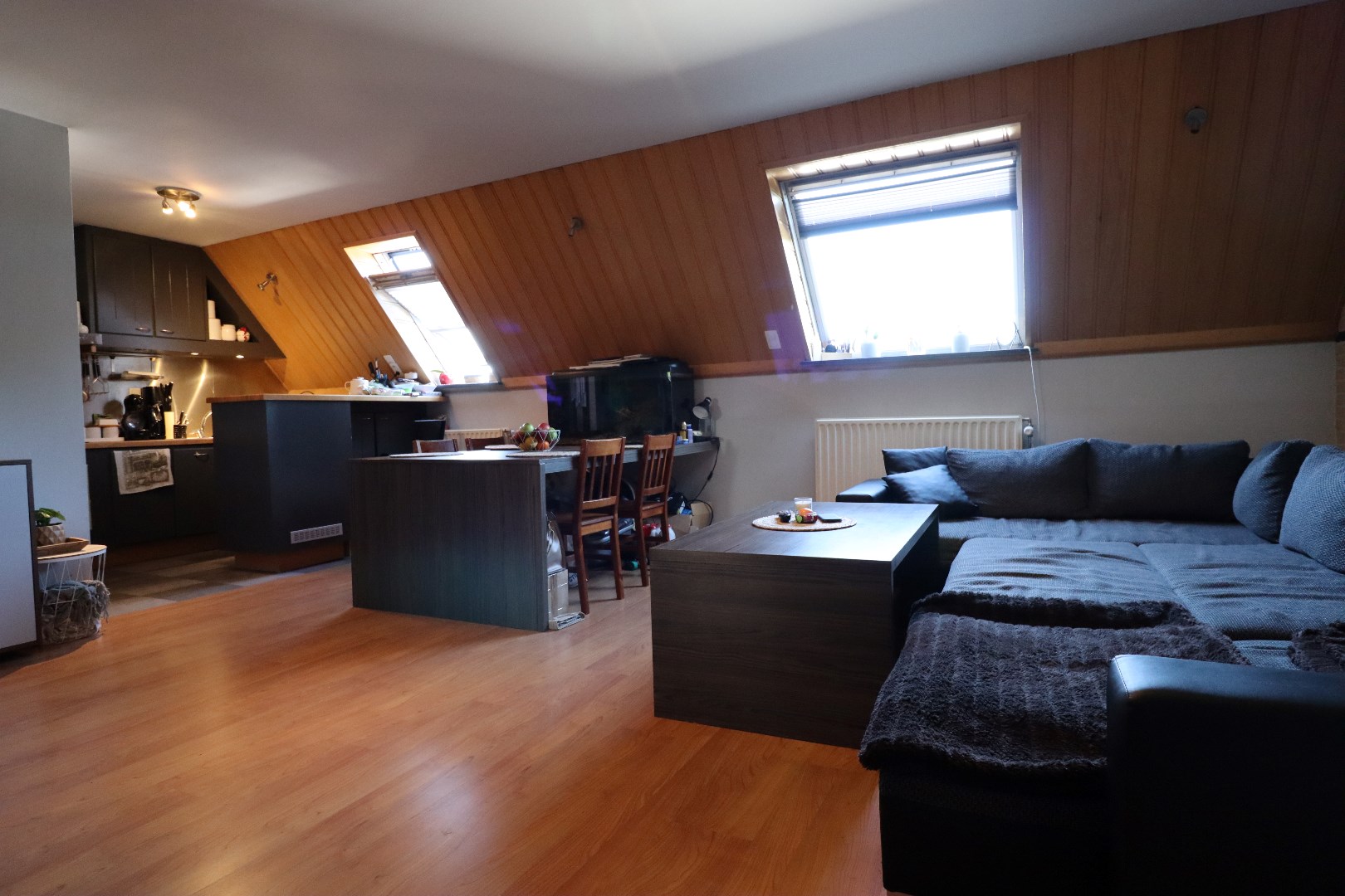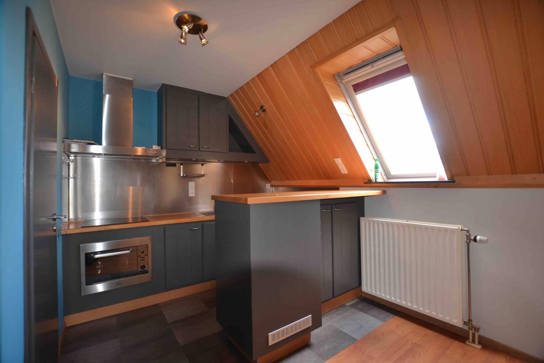 Appartement op de tweede verdieping: je komt het appartement binnen langs de inkomhal die beschikt over voldoende opbergruimte voor het plaatsen van uw schoenenkast, vestiaire. Tevens bereik je de ruime woonkamer met voldoende natuurlijke lichtinval dankzij de grote dakramen. Aansluitend open keuken met alle modern comfort, daarnaast een berging met wasplaats. Verder zijn er nog twee slaapkamers, een toilet, een badkamer voorzien van een ligbad en een enkele wastafel in een meubel.
