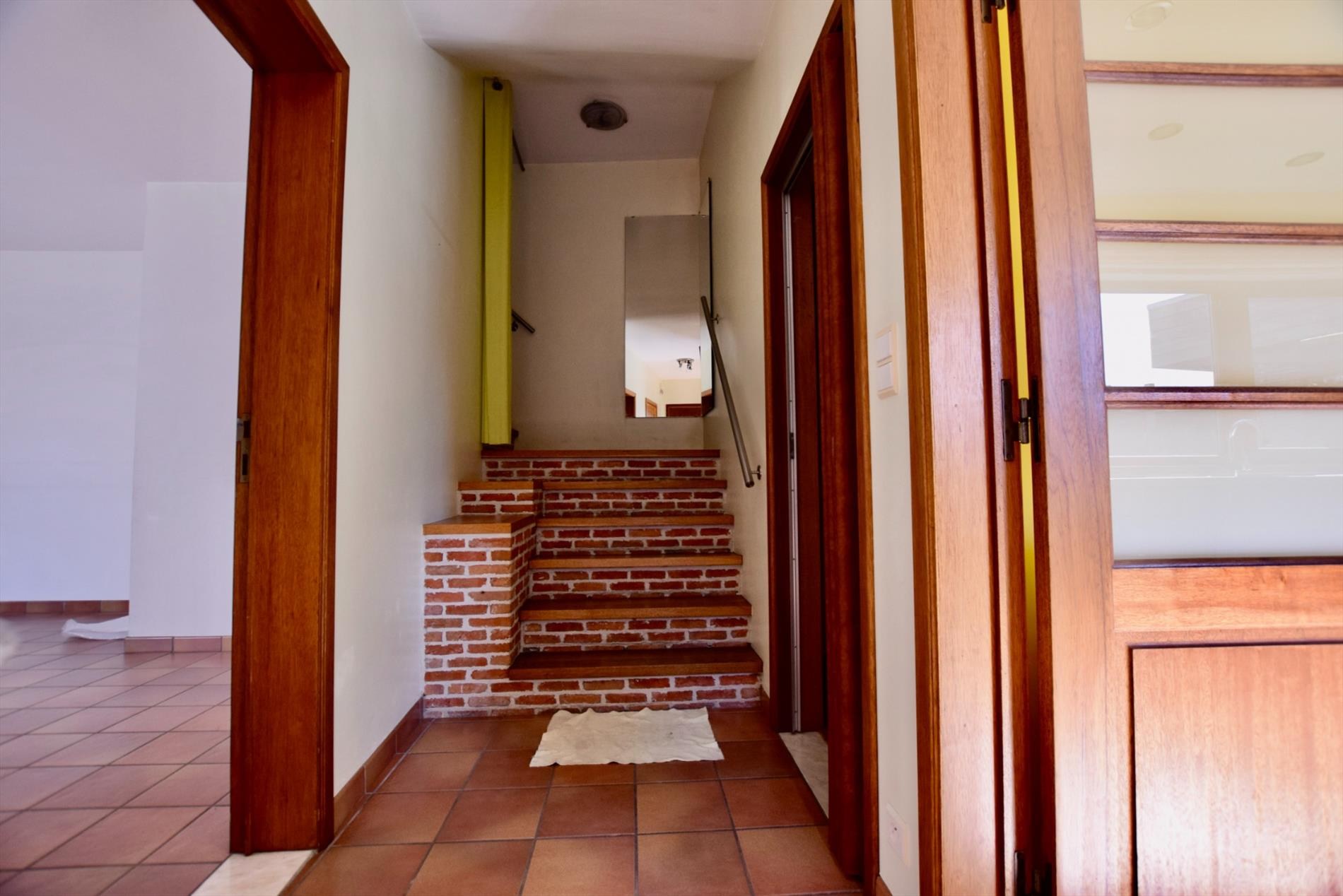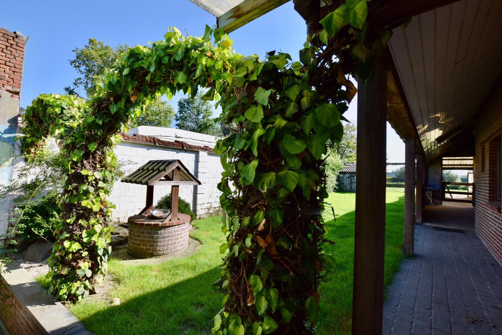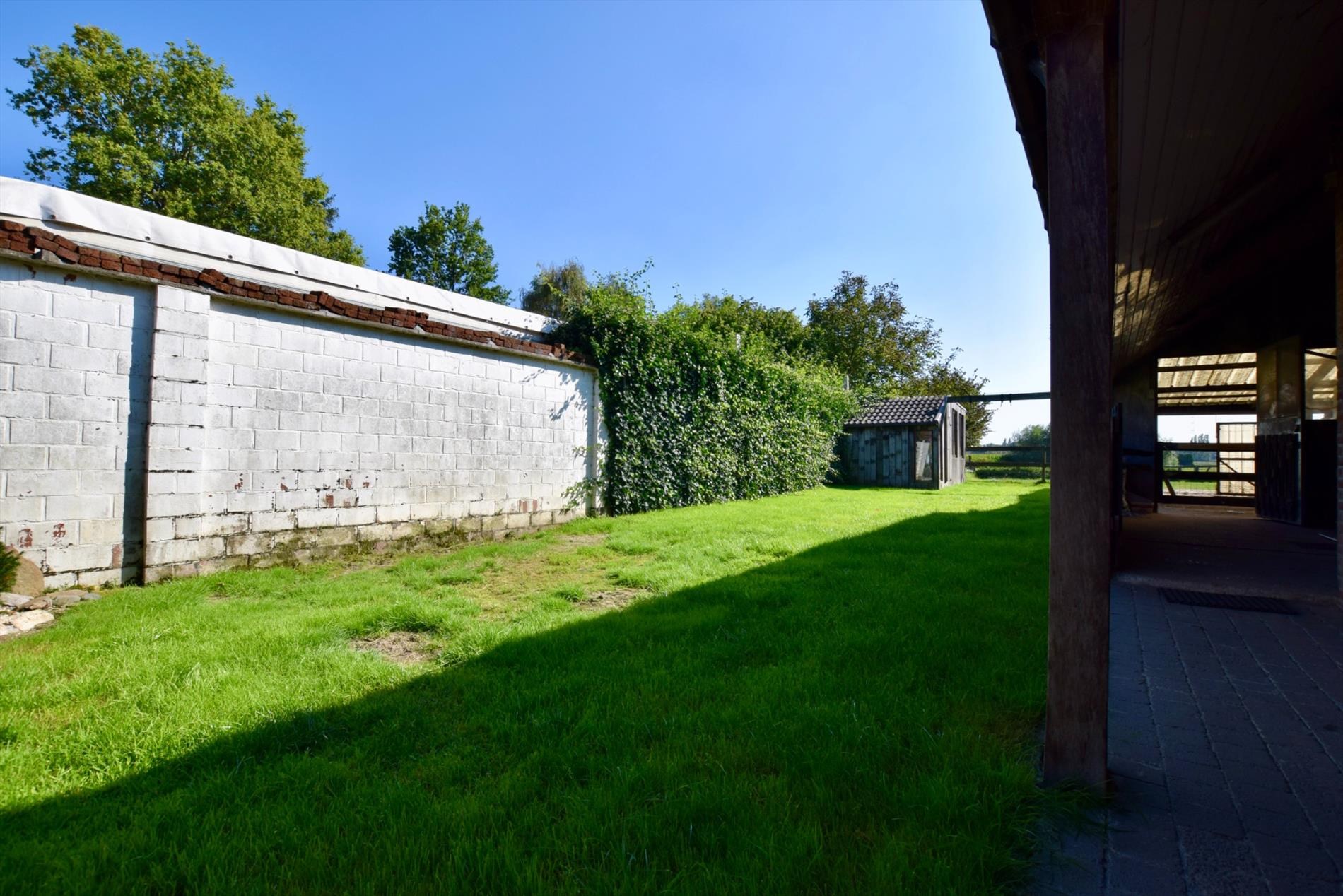 Indeling gelijkvloers: inkomhal met gastentoilet en vestiairemogelijkheid. Ruime living met veel lichtinval (incl. eetkamer). Geïnstalleerde keuken, voorzien van de nodige kasten en toestellen (waaronder een koelkast met vriesvak, een gasvuur, een dampkap en een oven). Ruime berging met aansluiting voor het wasmachine en de droogkast. Badkamer met dubbel lavabomeubel en ligbad. Veranda die rechtstreeks toegang verleent tot de gezellige tuin achteraan. Ruime garage met voldoende opbergruimte én parkeerplaats(en). Twee paardenstallen met overdekte werkplaats voor o.a. de paarden én een wei achteraan de tuin.