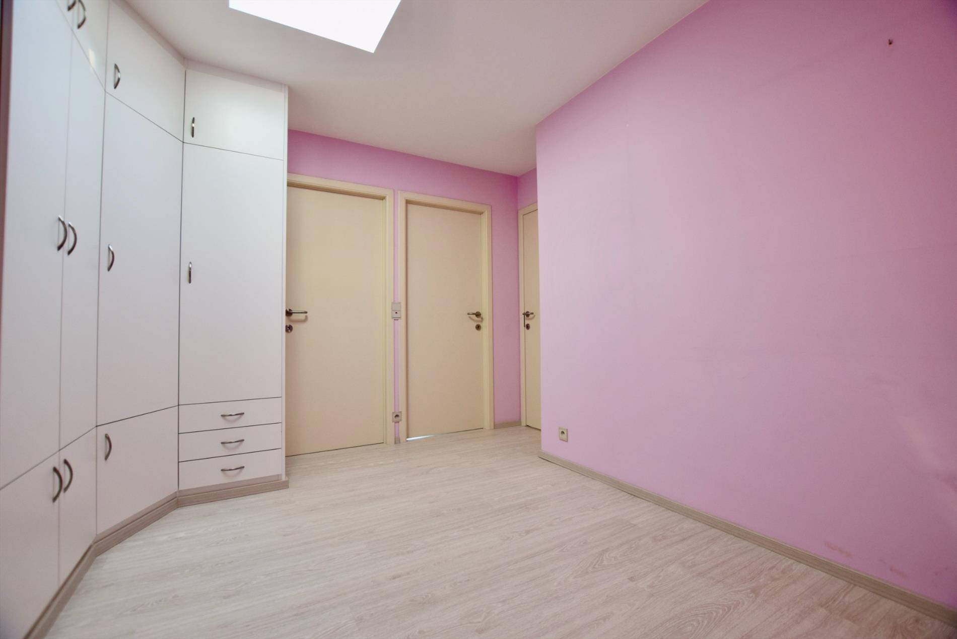 Indeling eerste verdieping: ruime slaapkamer vooraan (aan het straat). Twee ruime slaapkamers achteraan (ter hoogte van de tuin) met een ruime doorloopkamer. Deze kamer kan eveneens gebruikt worden als slaapkamer, deze kamer is voorzien van ingemaakte kasten. Op de eerste verdieping is er tevens een aparte toilet voorzien.