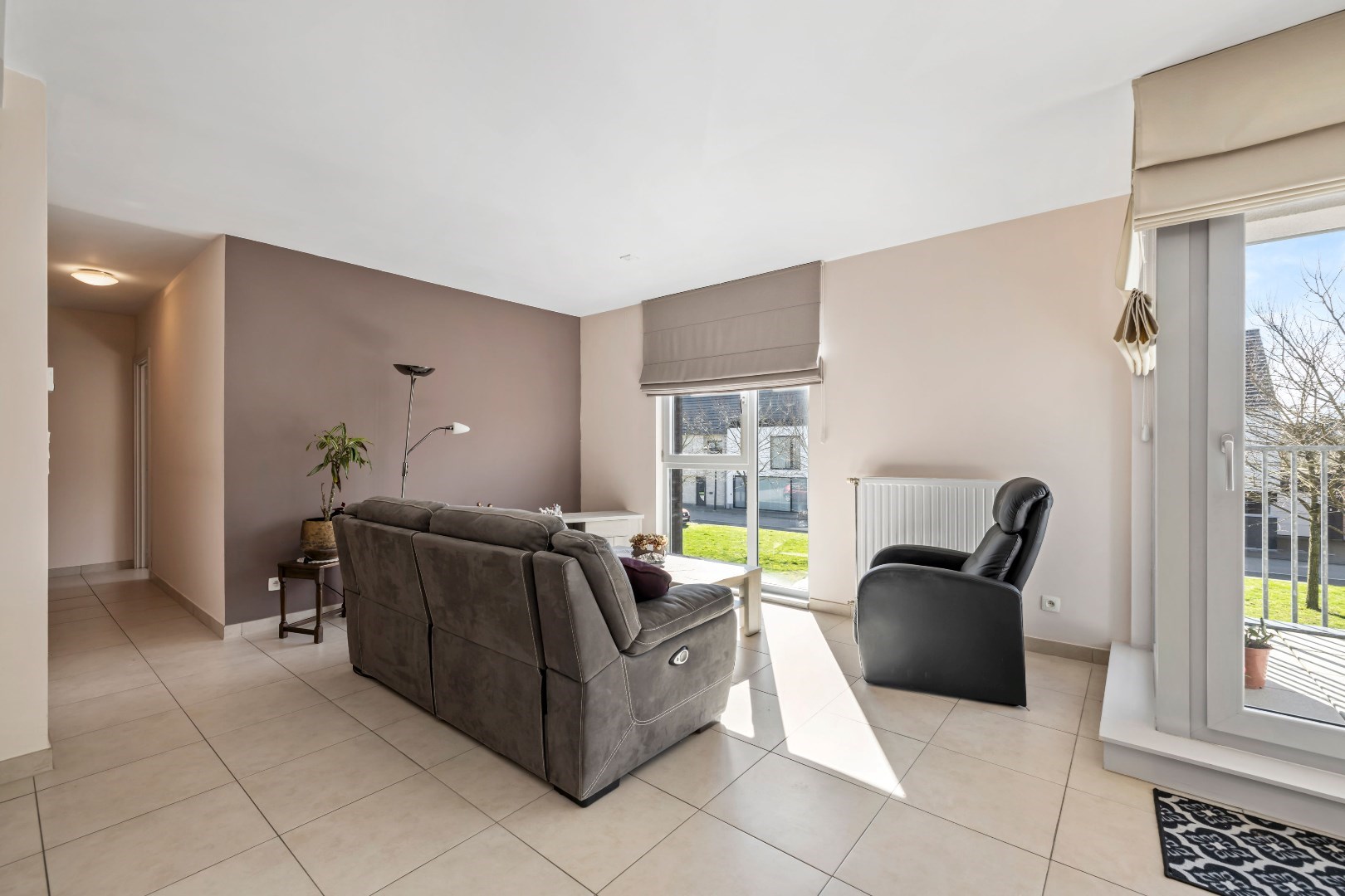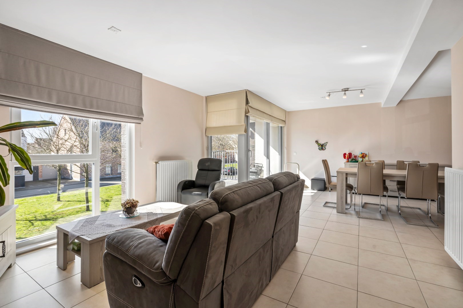We betreden het appartement via de inkomhal met vestiaire en gasten toilet. Er is een lichtrijke leefruimte met open keuken voorzien van alle toestellen. De badkamer is voorzien van bad en dubbele wastafel. Het appartement heeft twee ruime slaapkamers en een Zuid-West gericht terras.