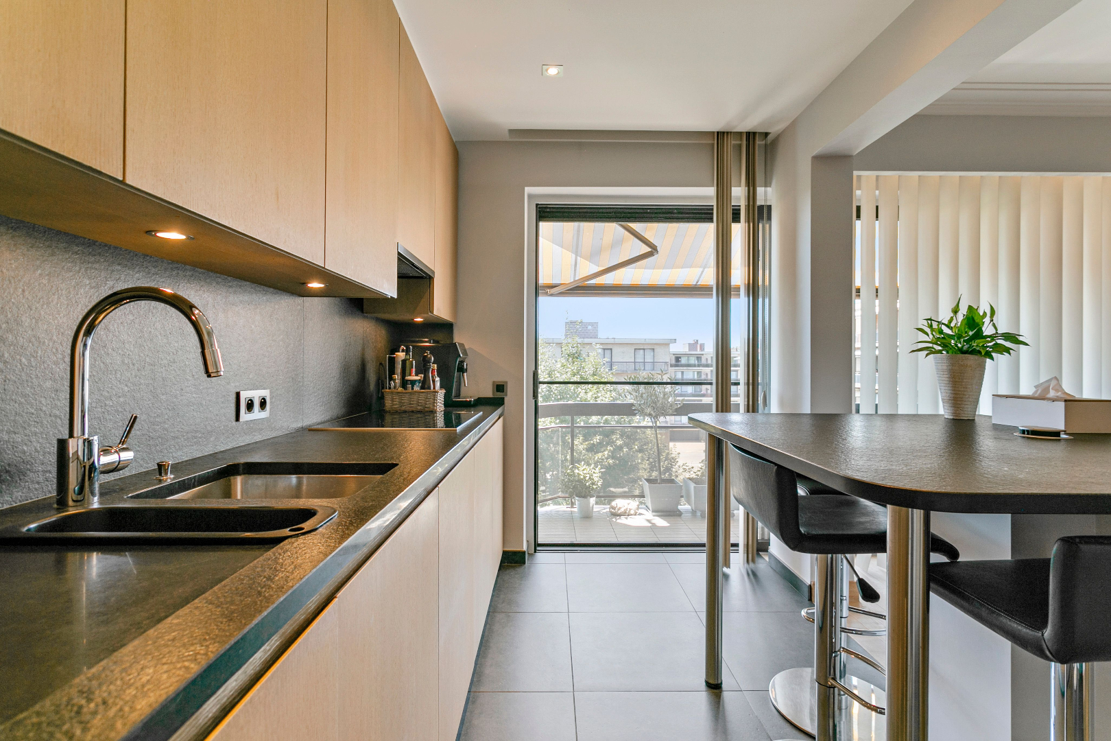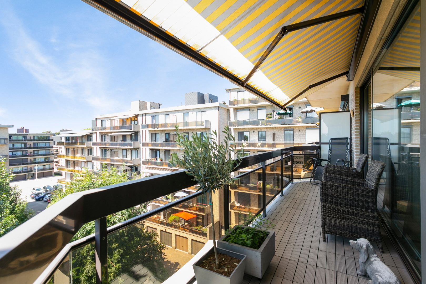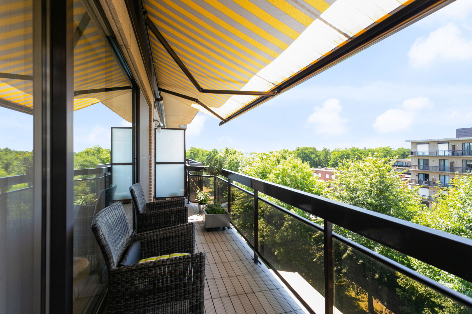 Zowel langs de livingzijde als langs slaapkamerzijde is een ruim zonneterras voorzien met vliegenraam en automatische zonnetent! Het dak werd onlangs vernieuwd (2020) en is voorzien van extra isolatie.