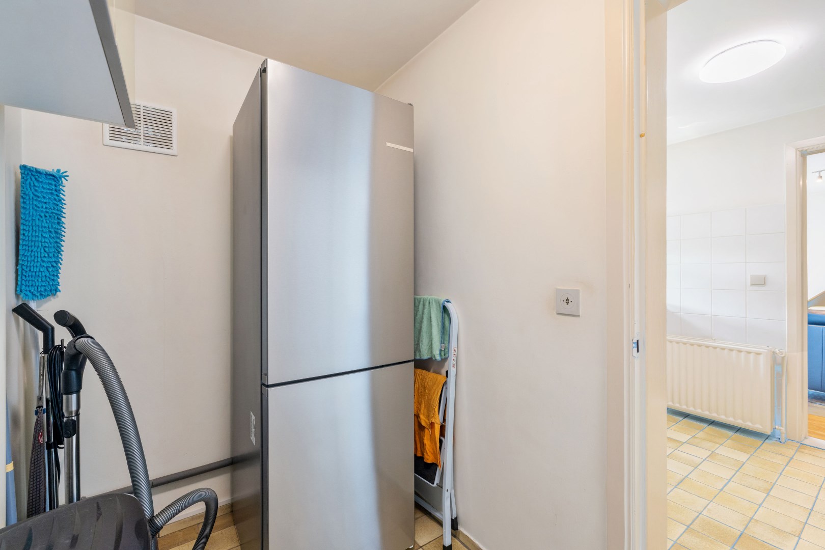 Dit netjes onderhouden appartement is gunstig gelegen op de tweede verdieping, op korte afstand van het centrum en alle belangrijke invalswegen. U komt binnen via een aparte inkomhal die toegang biedt tot de ruime leefruimte met eetplaats. De aparte keuken sluit aan op een technische berging met aansluiting voor wasmachine en droogkast. Verder beschikt het appartement over twee ruime slaapkamers, waarvan de master bedroom directe toegang heeft tot het terras. Er is een apart gastentoilet en een extra berging die ideaal is voor stockage of huisvuil. De badkamer is uitgerust met een toilet, bad/douchecombinatie en enkele lavabo. Let op: er is geen lift aanwezig in het gebouw. De syndic wordt beheerd door een bewoner binnen het gebouw, er is dus geen professionele syndicus.