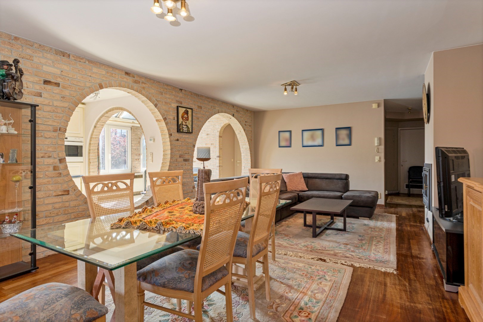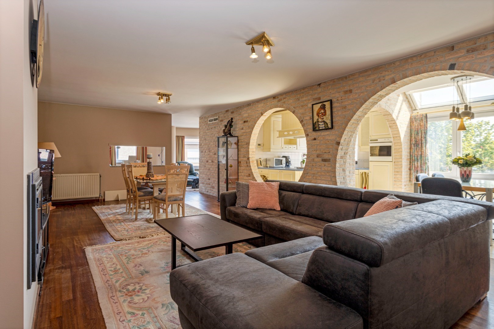 Het gevoel voor ruimte valt heel hard op in dit appartement. Door de collosale bogen en de grote hoeveelheid natuurlijk daglicht krijgt men het gevoel dat men zich in het zuiden van Frankrijk bevindt. De keuken beschikt over alle modern comfort en de grote raampartijen beschikken over elektrische screens.