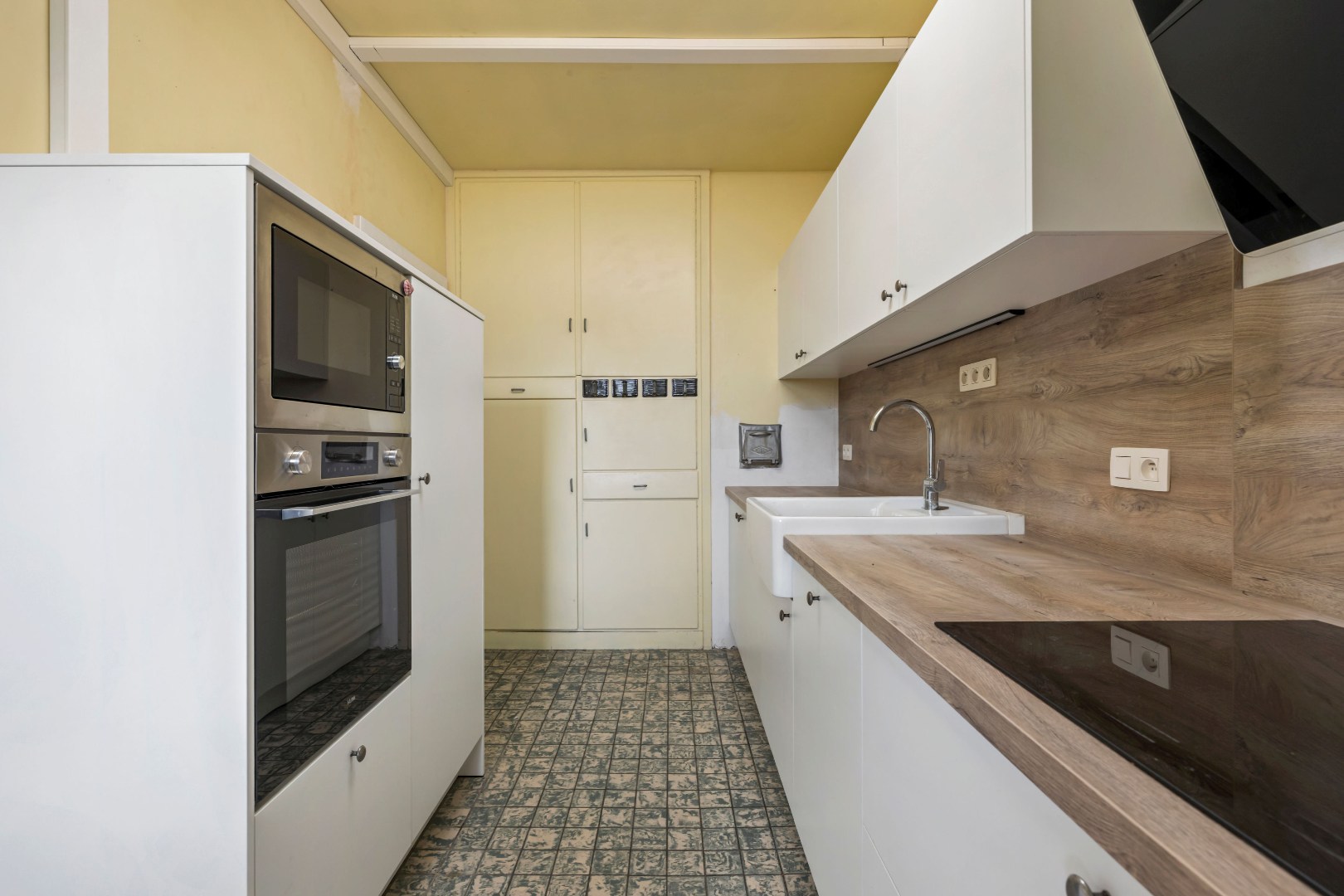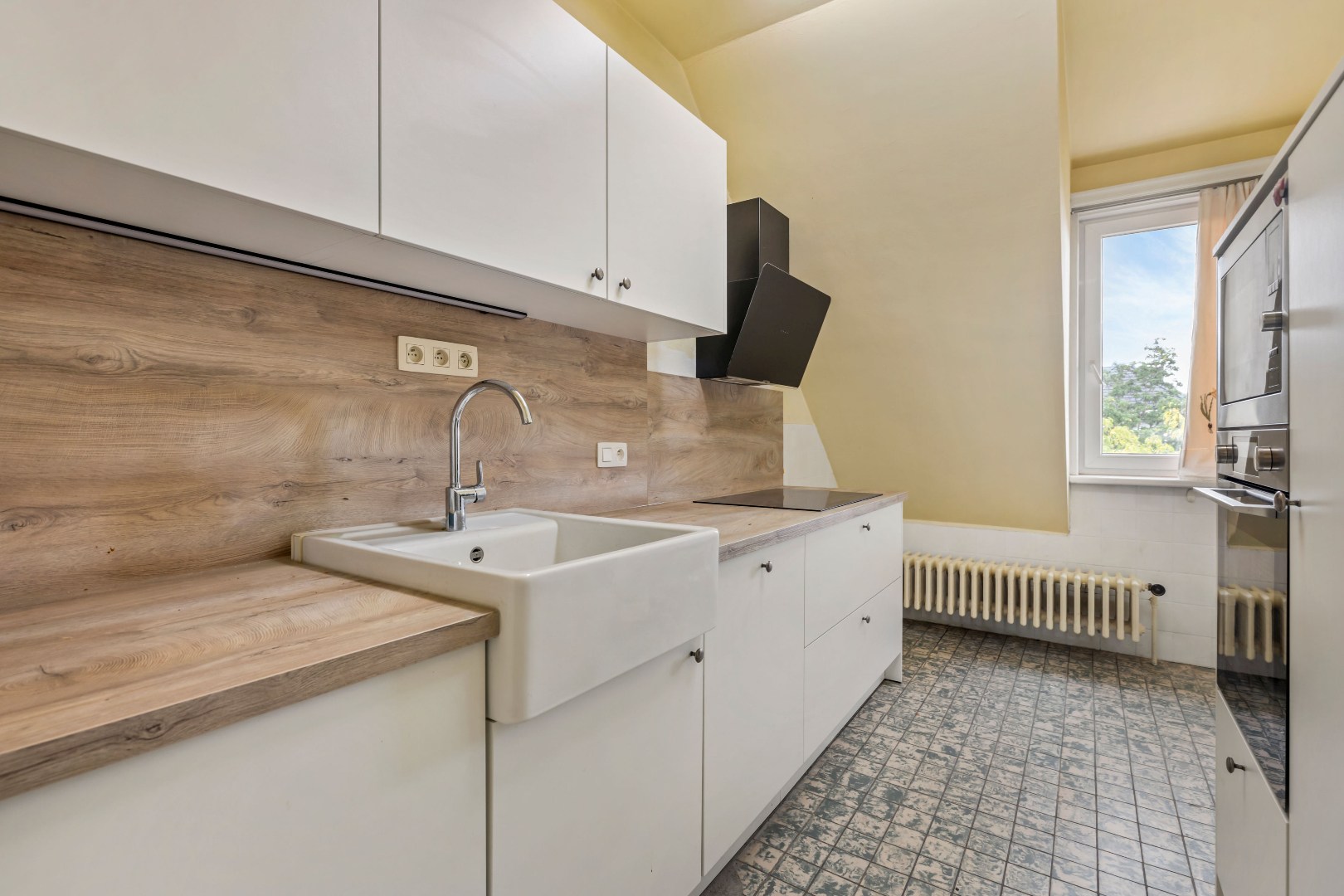 De recente, volledig vernieuwde keuken vormt een echte troef: modern, praktisch en met alle hedendaags comfort. De leefruimte met houtkachel en blokparket straalt warmte en karakter uit. Verder beschikt het appartement over een badkamer met alle noodzakelijke voorzieningen en twee ruime slaapkamers.