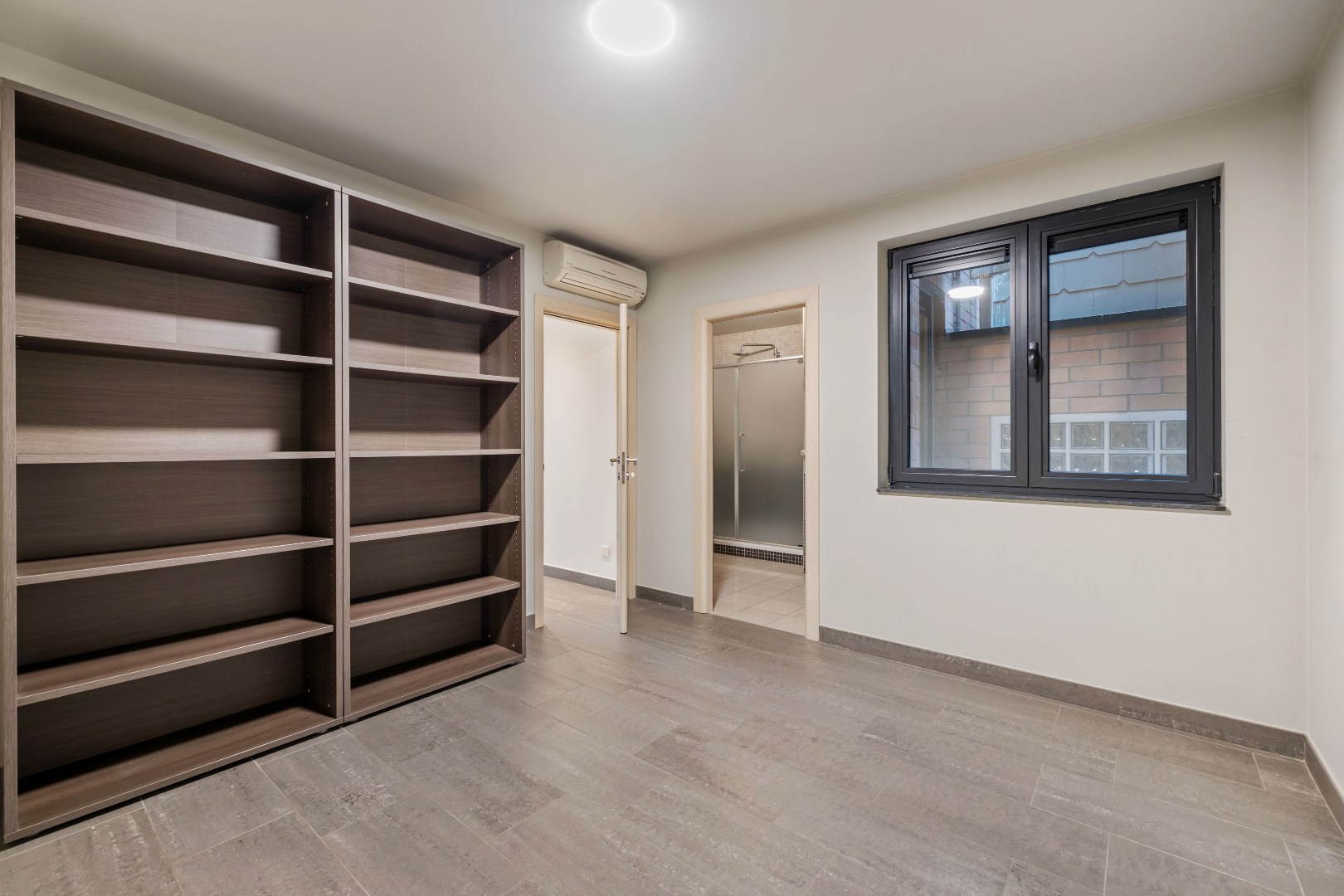 Achteraan is er een ruime slaapkamer met ensuite badkamer die is voorzien van dubbele lavabo en grote douche.
