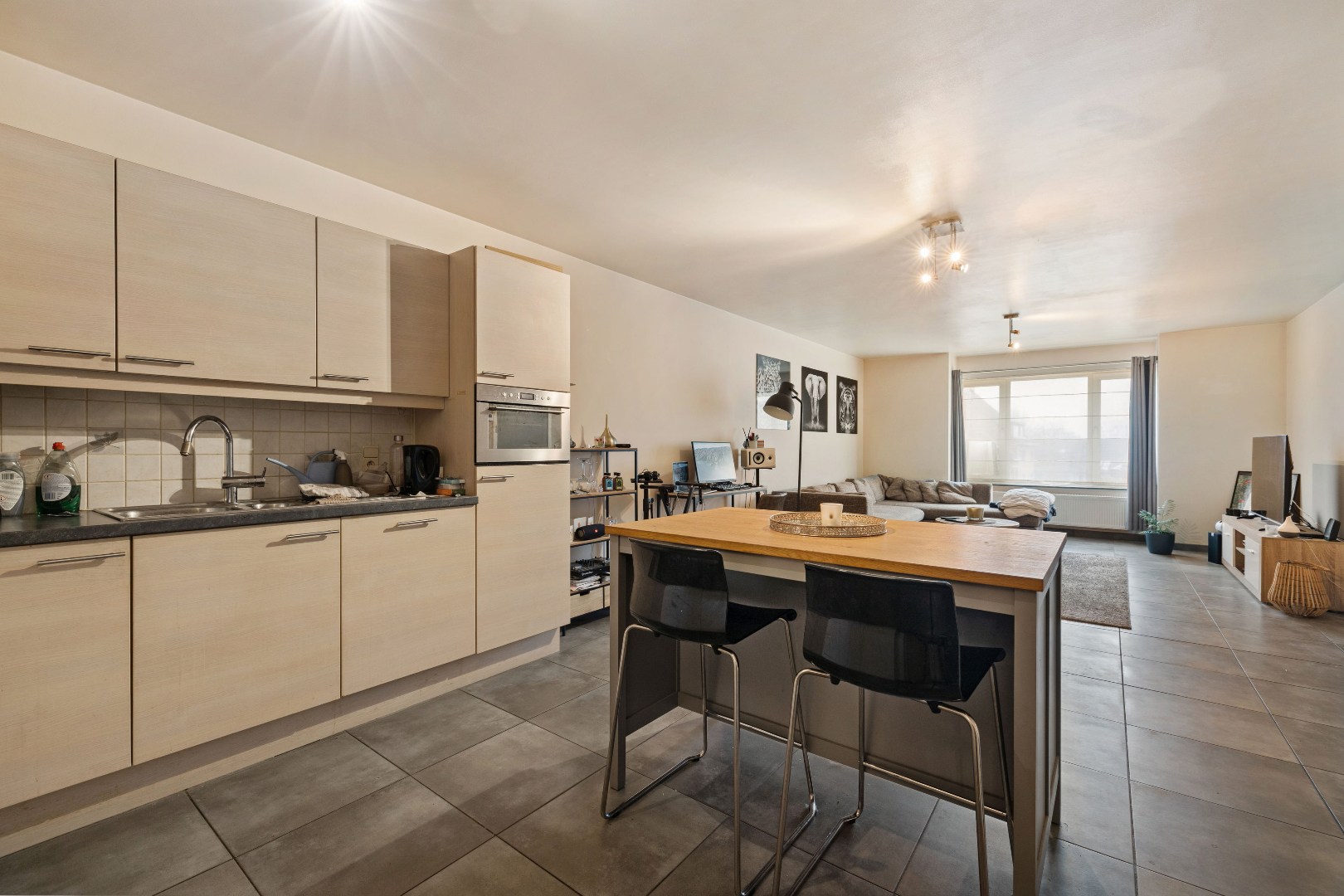 Bij het binnenkomen wordt u verwelkomd in een lichtrijke open leefruimte met open keuken. Dankzij de open indeling geniet u van een ruimtelijk gevoel en een aangename verbinding tussen koken, eten en ontspannen.
