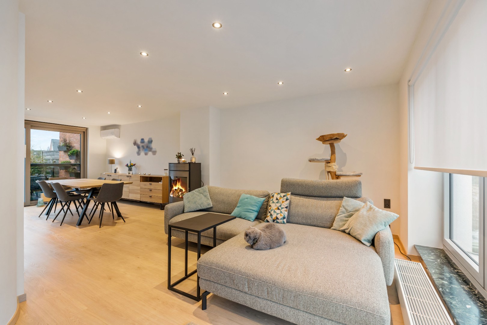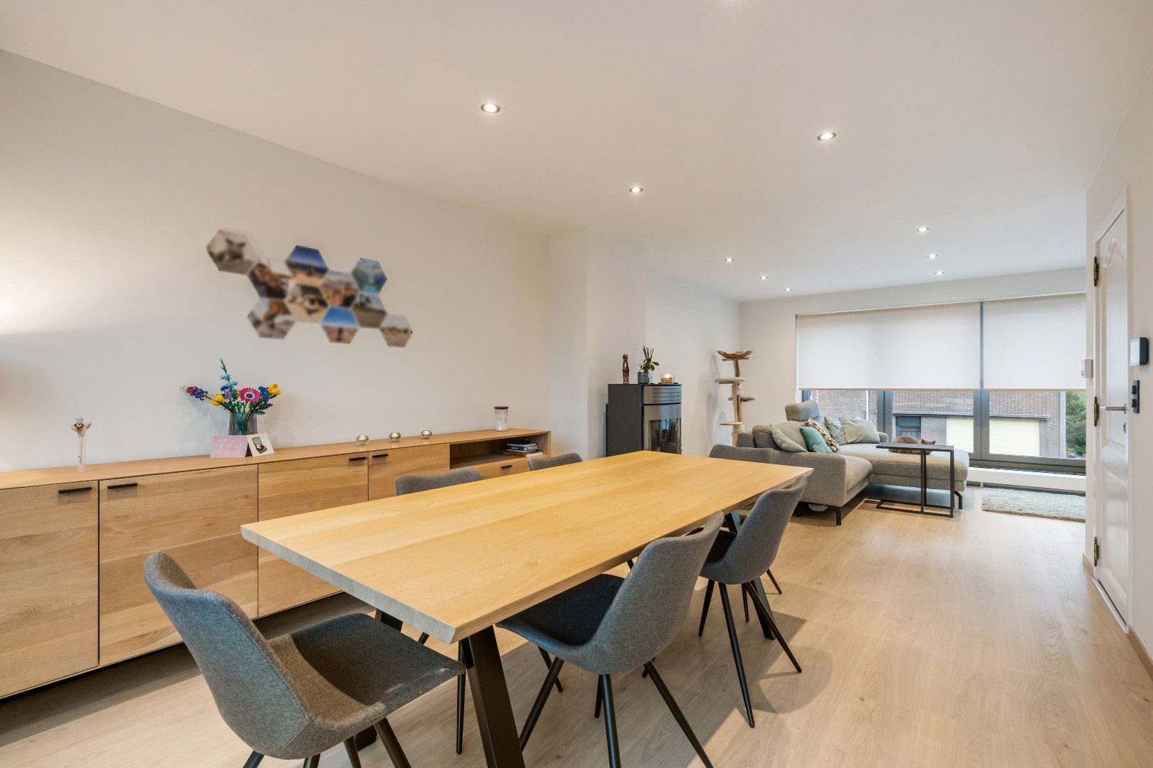De keuken is tot in de puntjes afgewerkt en vormt het hart van de woning.
