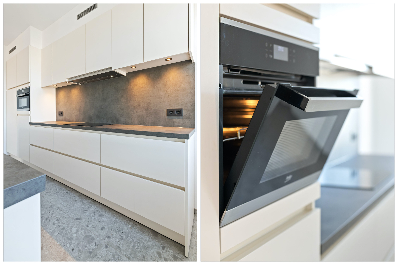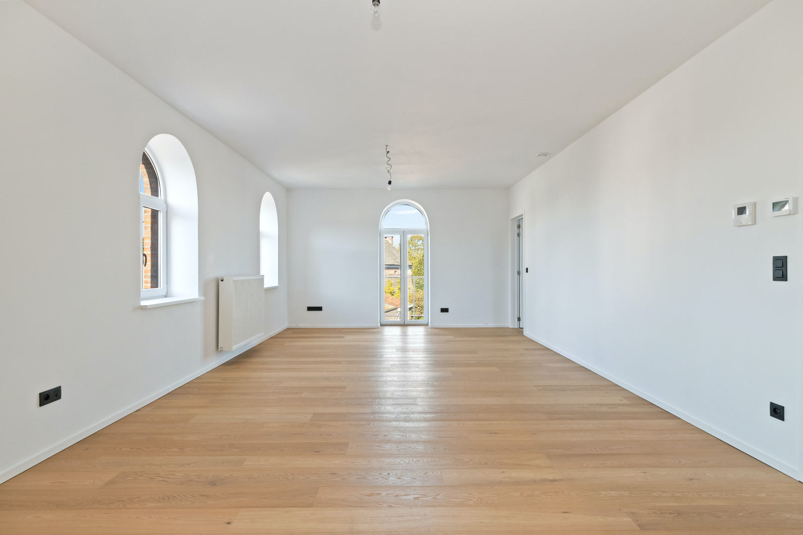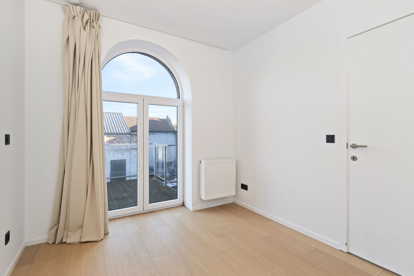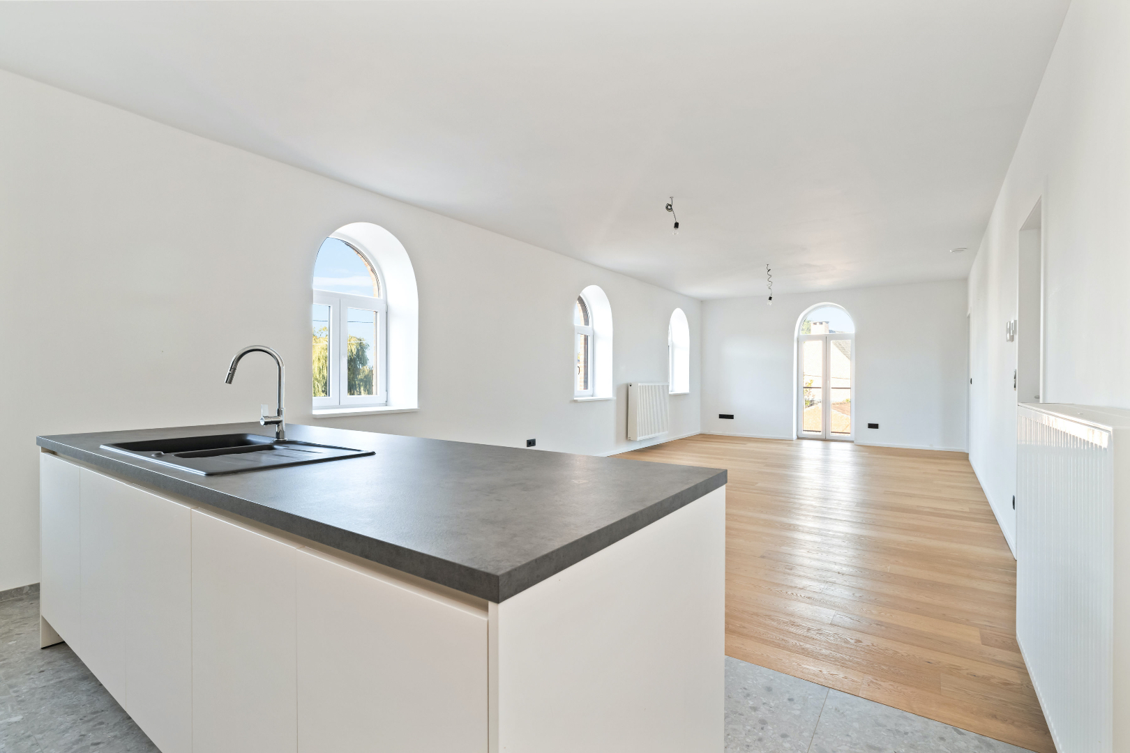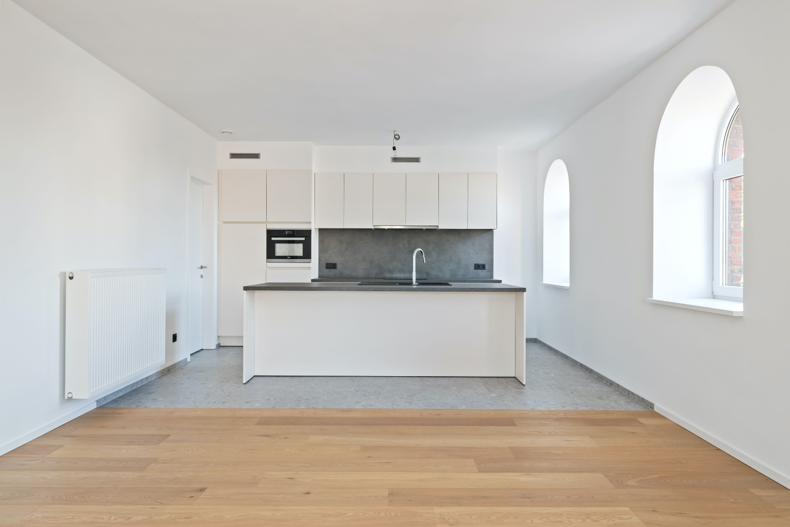 De appartementen zijn omgeven door grote, afgeronde ramen die zorgen voor veel en natuurlijk lichtinval. Dit creëert een open en ruim gevoel doorheen het volledige appartement. De architectuur houdt rekening met het karakter van het bestaande gebouw en de moderne huidige levensstijl van zijn toekomstige bewoners.