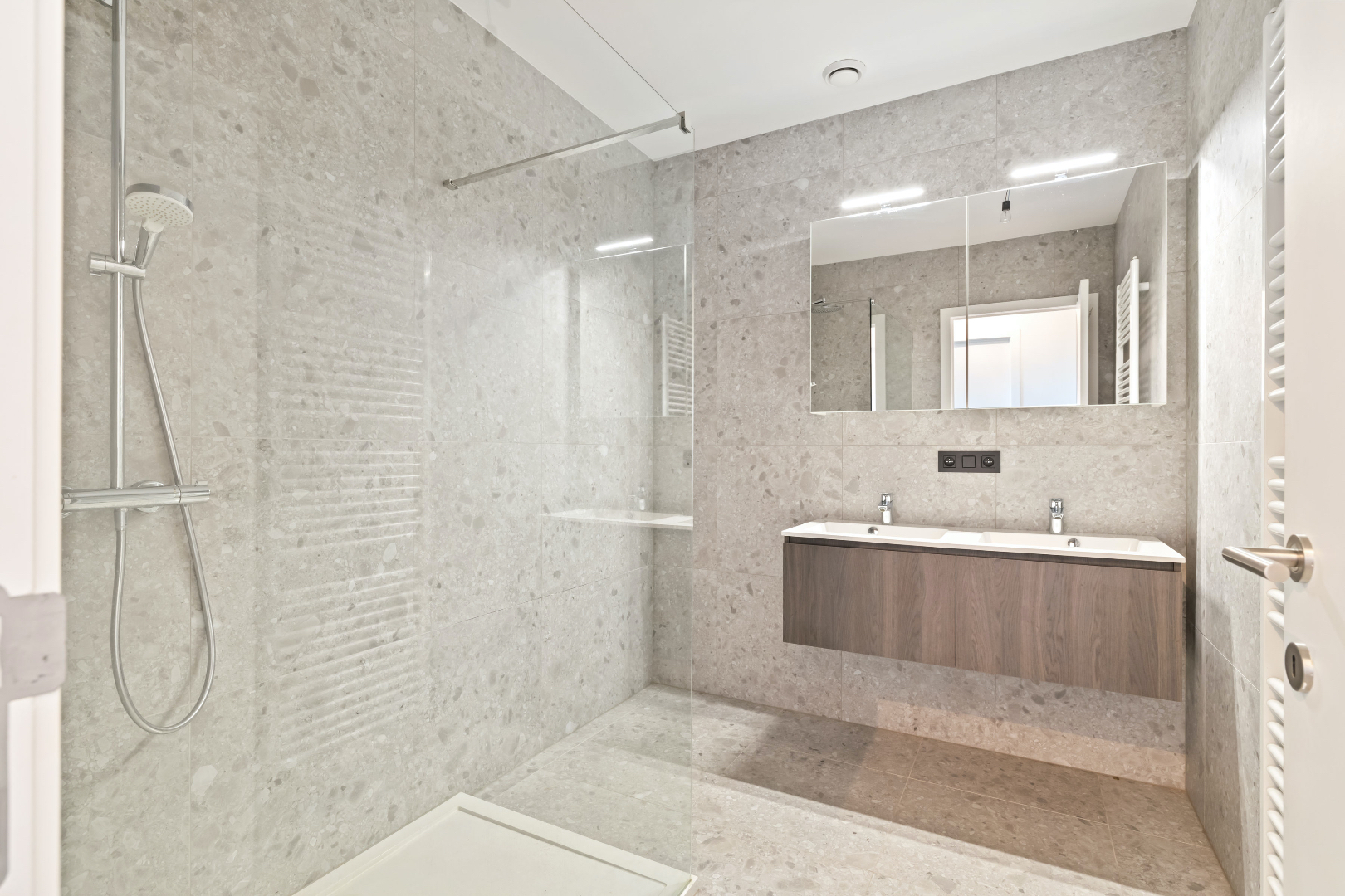 Elk appartement beschikt over een ruime inkomhal met apart gastentoilet, een ruime leefruimte met open keuken die volledig werd ingericht en aansluitend een berging. Daarnaast beschikt ieder appartement over 1 of 2 slaapkamers en een ruime badkamer met inloopdouche. Tenslotte beschikt ieder appartement over een ruim terras en de gelijkvloerse appartementen beschikken over een omheinde privétuin.