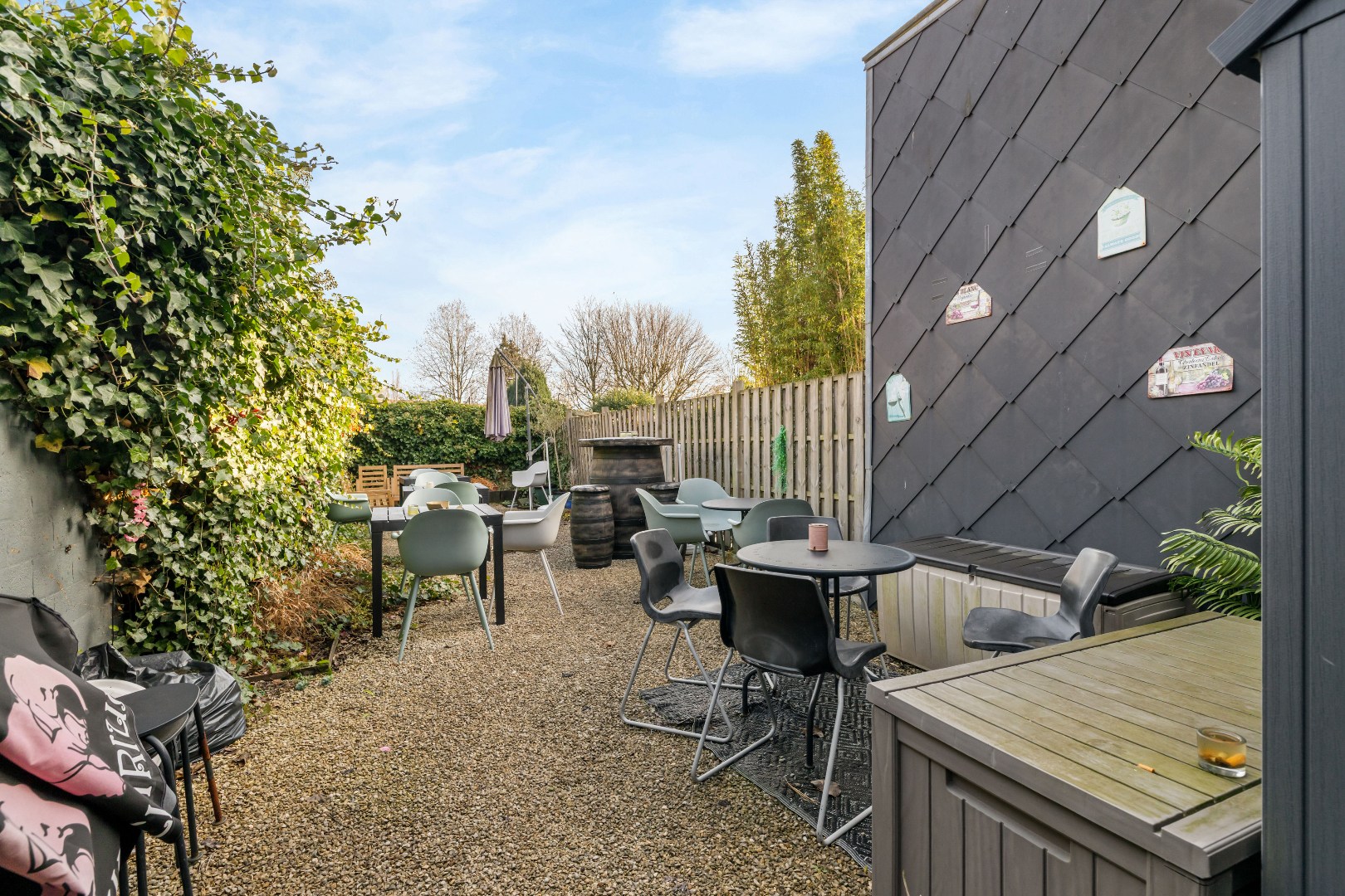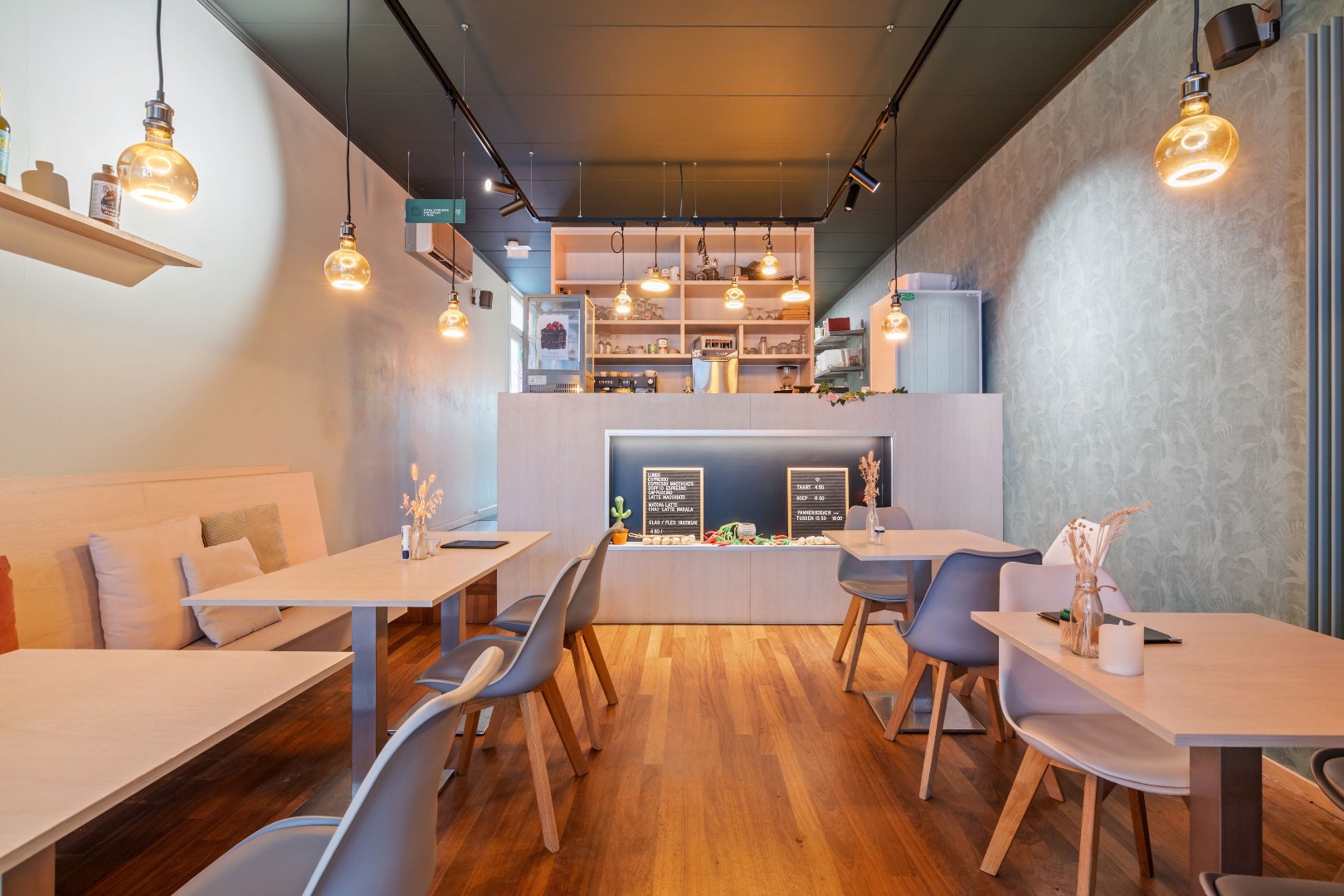 Het handelspand is praktisch en sfeervol ingericht, met vooraan een gezellige ruimte voorzien van toog. Achteraan bevindt zich een uitgeruste keuken en een aangenaam terras, wat een mooie meerwaarde vormt voor diverse commerciële invullingen. Bovendien is het pand voorzien van airconditioning en twee ruime toiletten.