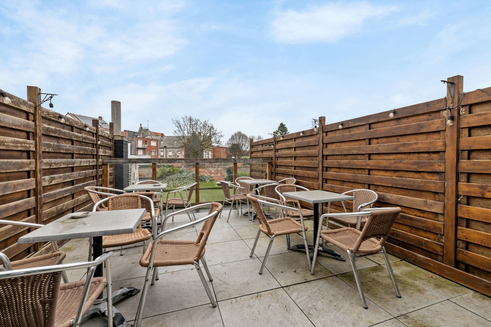 De handelsruimte is praktisch ingericht en beschikt over een ruime toog en voldoende sanitaire voorzieningen, wat het pand geschikt maakt voor café-, bistro- of andere horecaconcepten. Daarnaast zijn er een gezellig zonneterras en een bijkomend dakterras, wat een duidelijke meerwaarde biedt voor klanten.