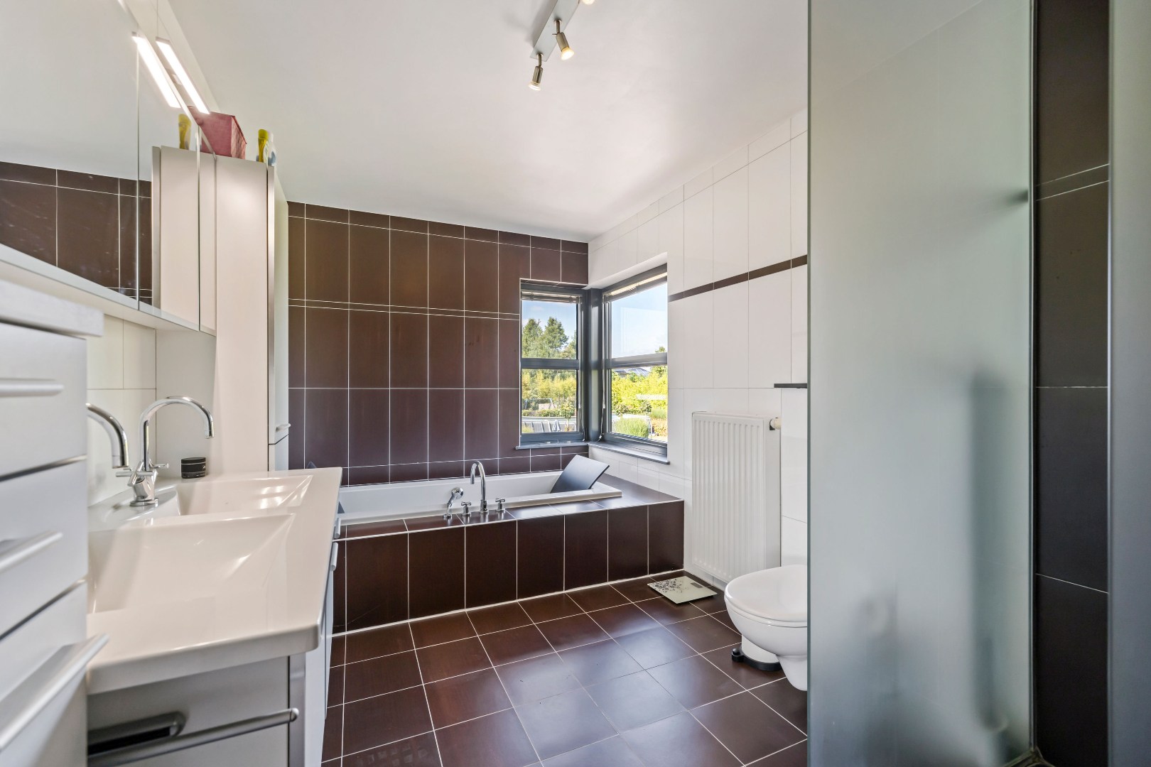 Op de eerste verdieping vinden we drie ruime slaapkamers en de badkamer met ligbad, inloopdouche en dubbele lavabo. Via de vaste trap komen we op de zolder die als 4de slaapkamers kan gebruikt worden.