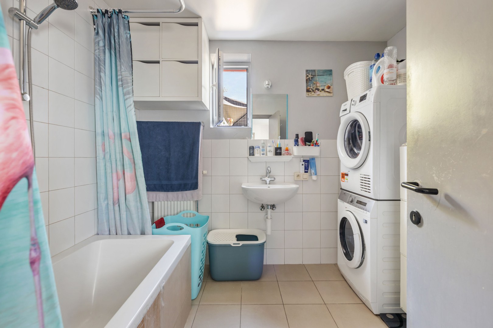 Bij het binnenkomen word je verwelkomd in een inkomhal die leidt naar de gezellige leefruimte, aansluitend de functionele keuken en achteraan de badkamer met toilet. Onder de trap bevindt zich nog een extra berging – handig als voorraadruimte of wasplaats.