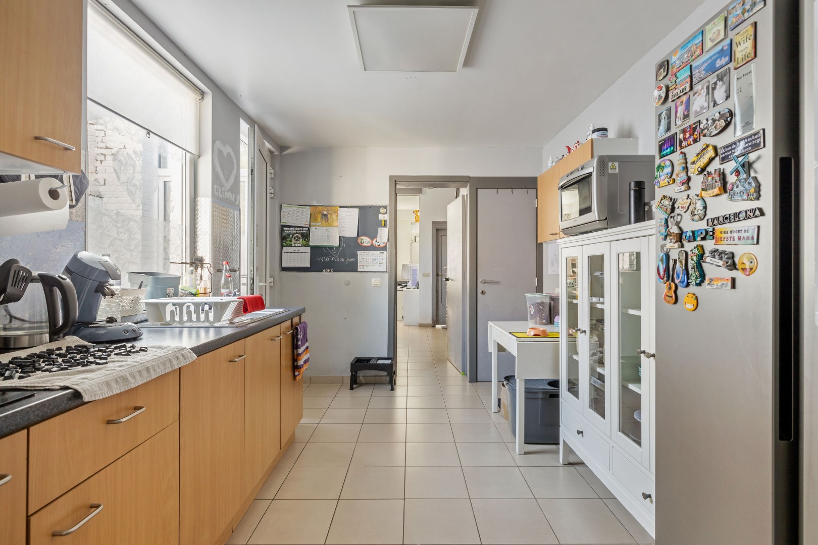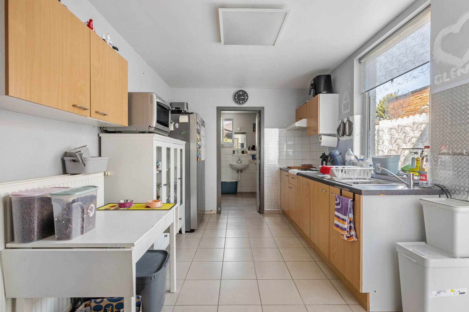Achteraan de woning geniet je van een onderhoudsvriendelijke tuin met toegang tot de garage, bereikbaar via de achterliggende weg, een grote troef in het centrum.