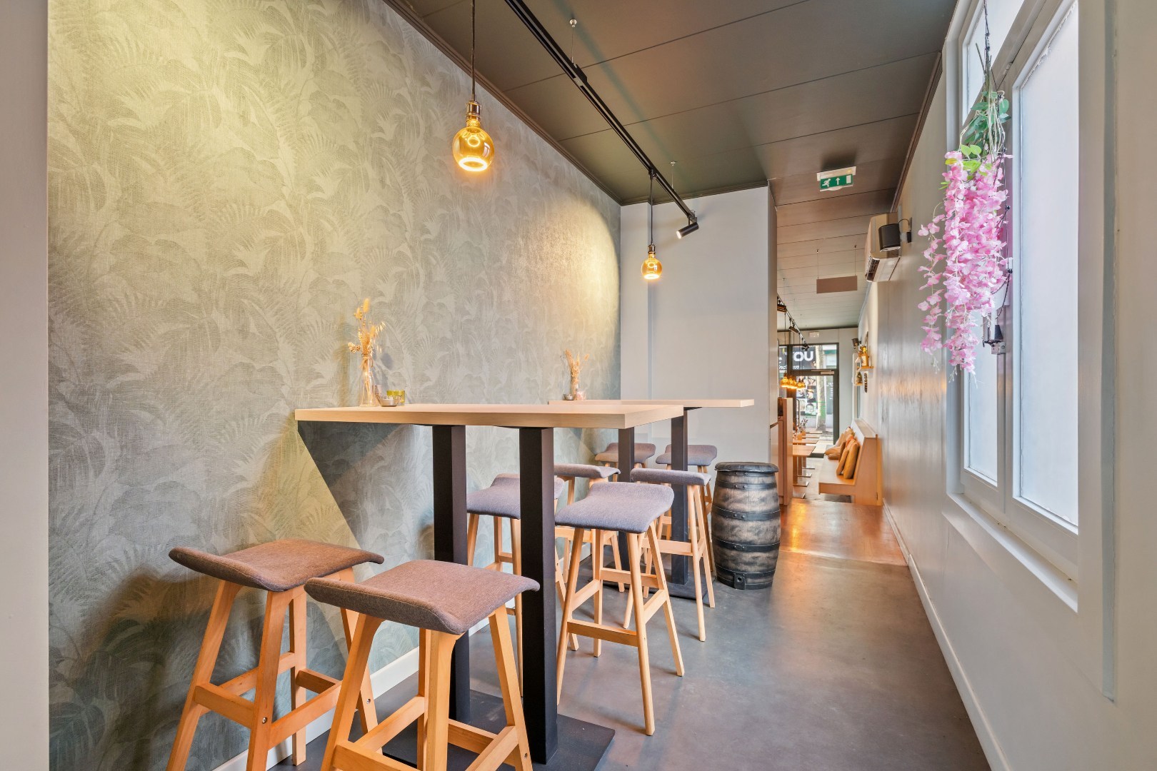 Het handelspand is praktisch en sfeervol ingericht, met vooraan een gezellige ruimte voorzien van toog. Achteraan bevindt zich een uitgeruste keuken en een aangenaam terras, wat een mooie meerwaarde vormt voor diverse commerciële invullingen. Bovendien is het pand voorzien van airconditioning en twee ruime toiletten.