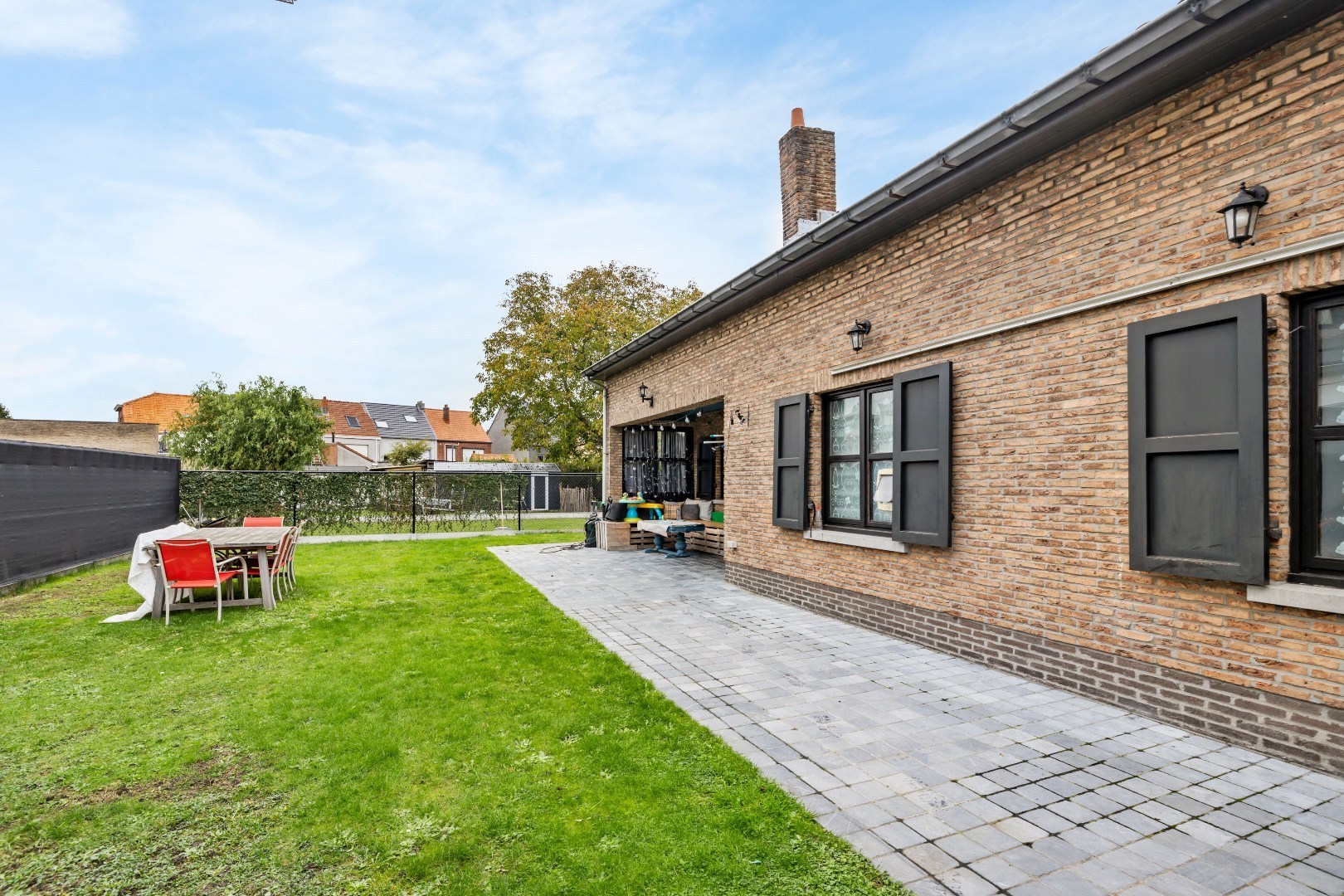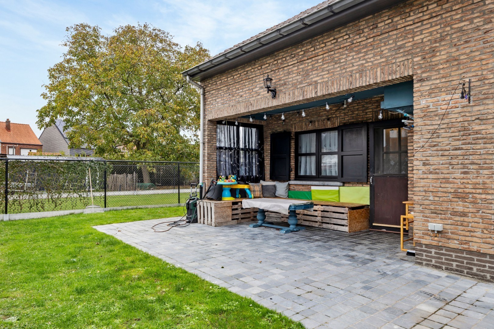 Buiten kan je genieten van een onderhoudsvriendelijke tuin met gezellig overdekt terras, perfect om het hele jaar door te ontspannen.