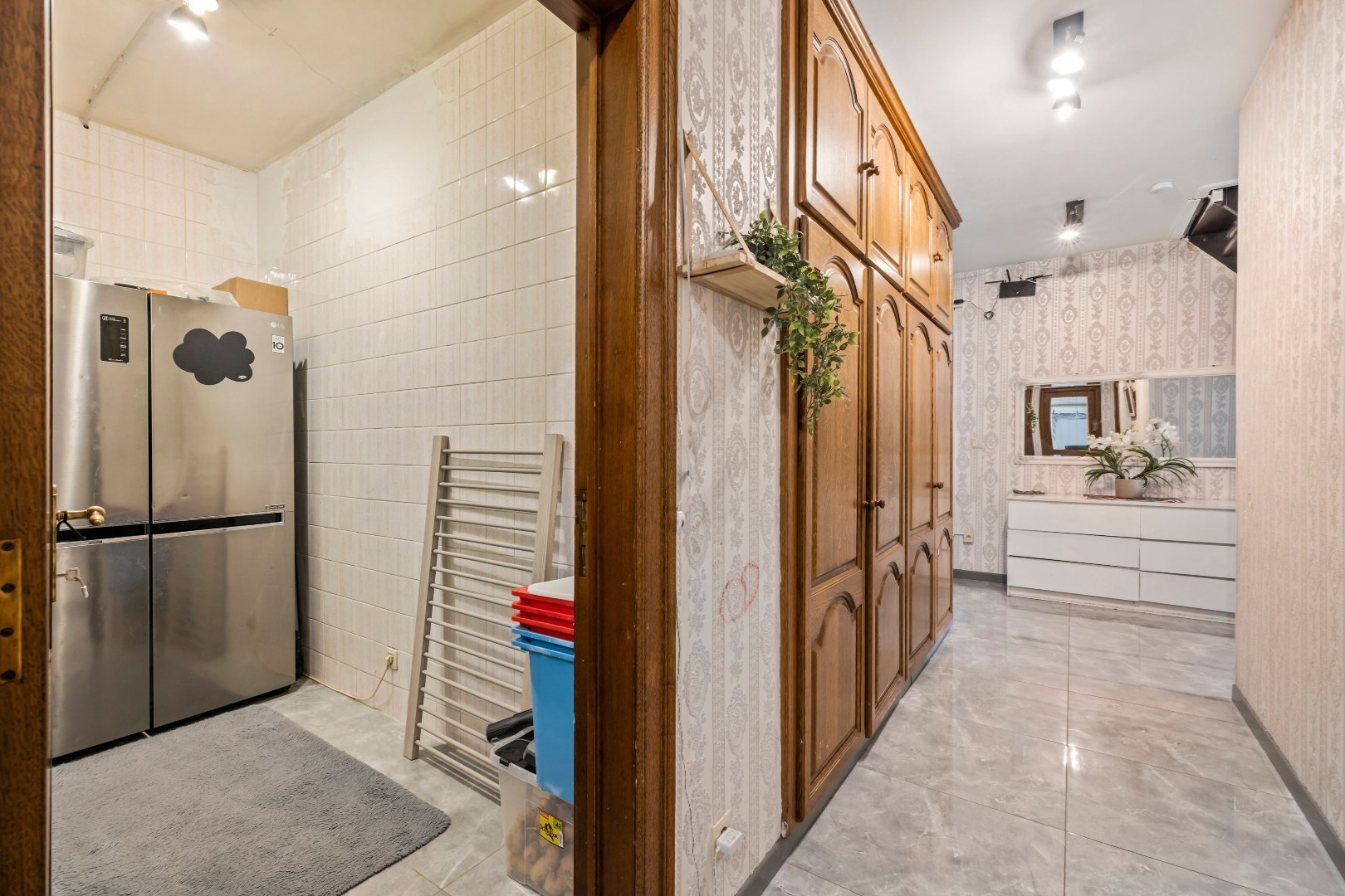 Bij het binnenkomen word je verwelkomd in een brede inkomhal die leidt naar de lichtrijke leefruimte met gezellige indeling en grote raampartijen. Aansluitend vind je de volledig vernieuwde keuken, uitgerust met hoogwaardige toestellen, een natuurstenen werkblad en een ingebouwd koffieapparaat – de perfecte plek voor wie houdt van koken in stijl.