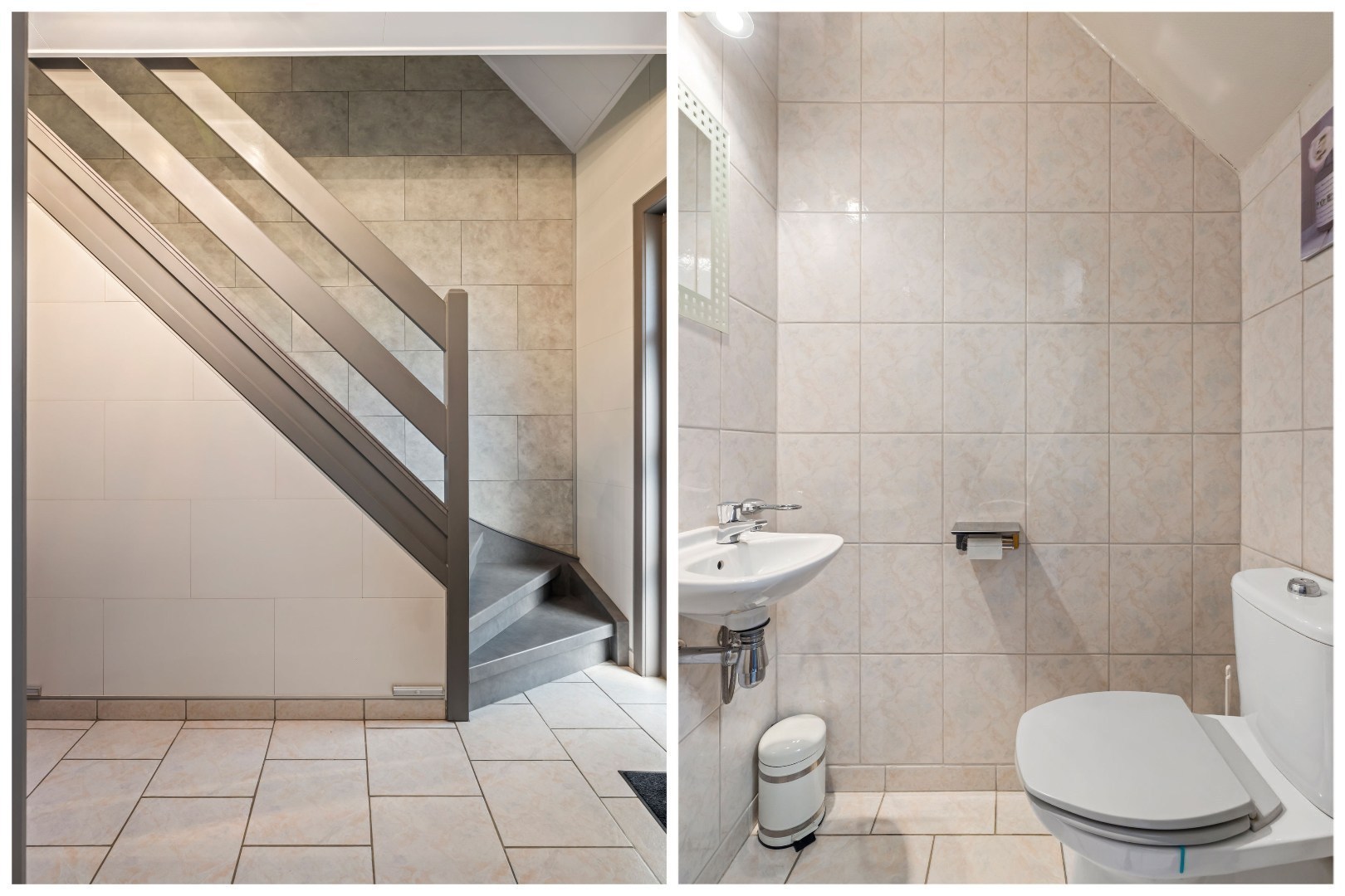 Bij binnenkomst word je verwelkomd in een ruime inkomhal met ingemaakte kasten en gastentoilet. De lichtrijke leefruimte staat in open verbinding met de volledig geïnstalleerde keuken, beide met een mooi uitzicht op de tuin. Aansluitend vind je een praktische bijkeuken/wasplaats en de toegang tot de inpandige garage.
