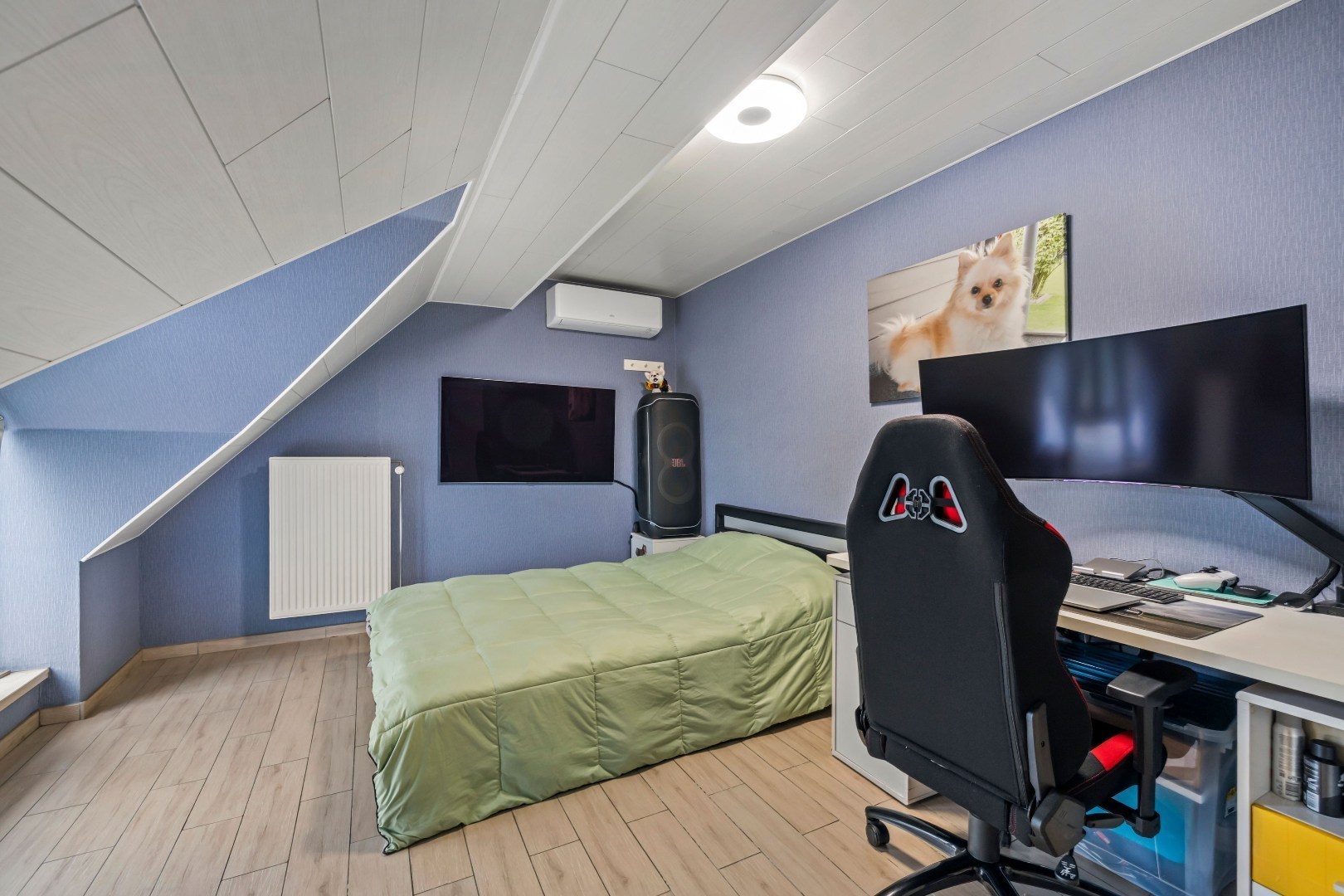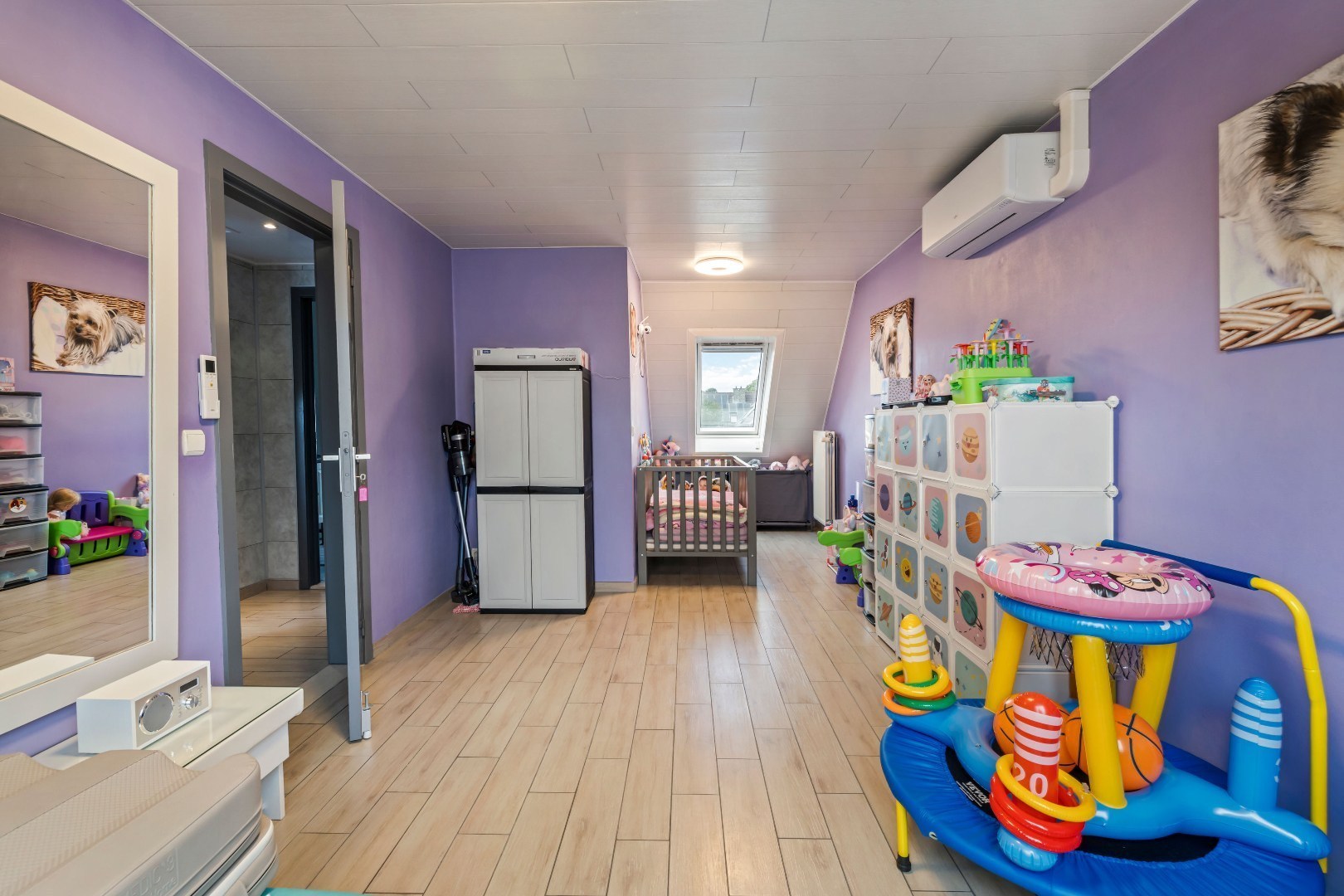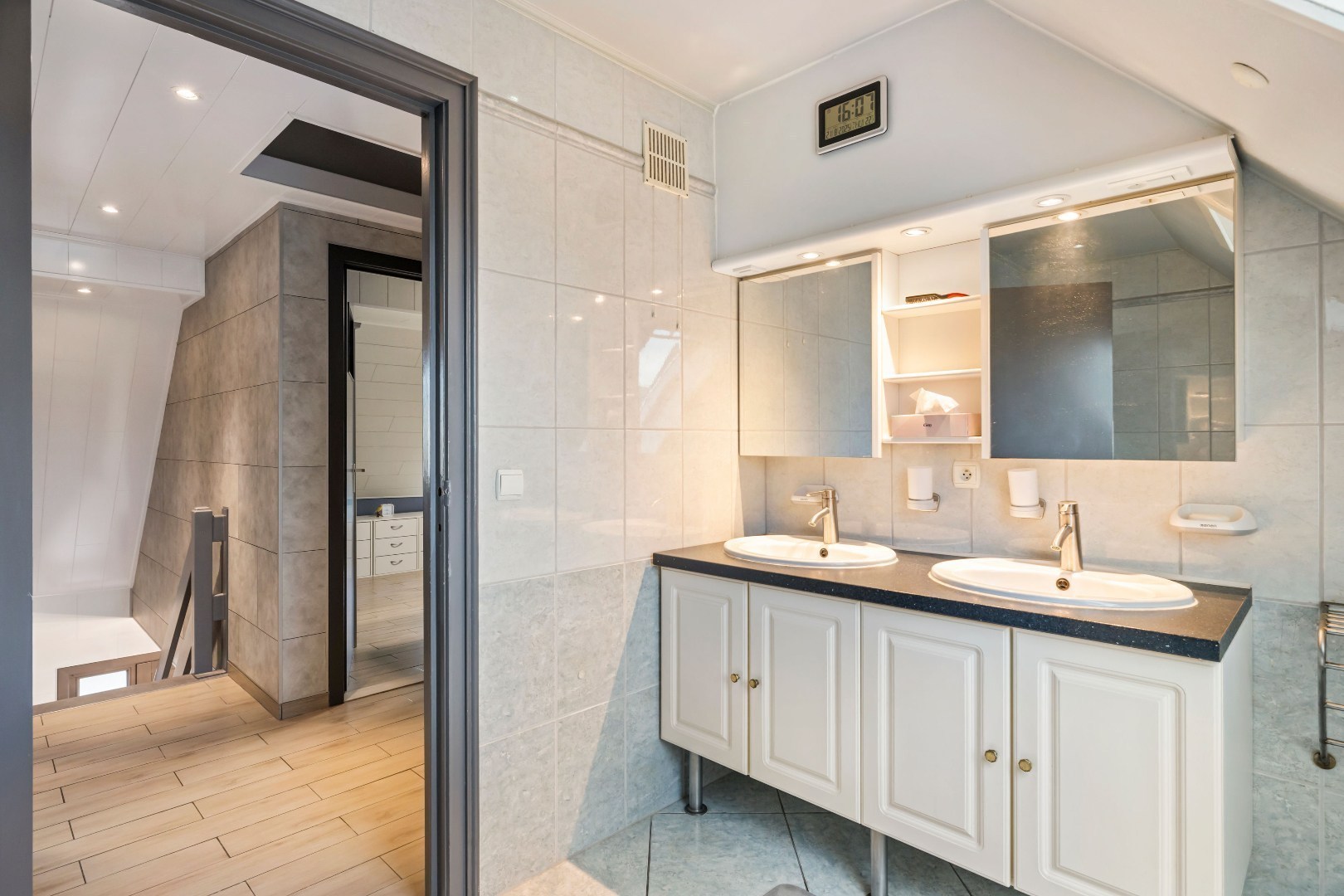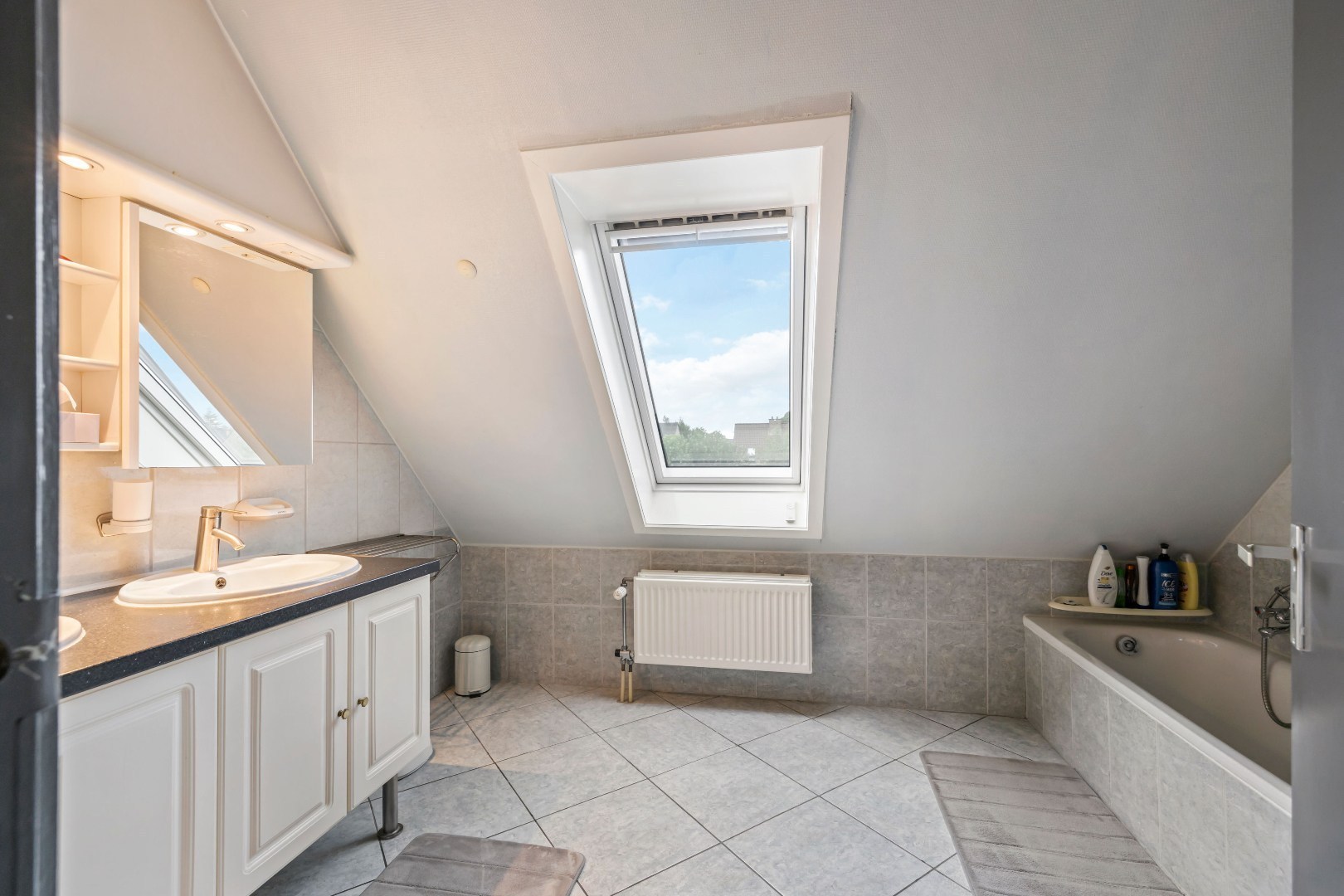 Op de eerste verdieping zijn er drie ruime slaapkamers, waarvan één kamer groot genoeg is om eventueel op te splitsen in een extra slaapkamer. Daarnaast is er een verzorgde badkamer met alle comfort. De afgewerkte zolder biedt bijkomende bergruimte.