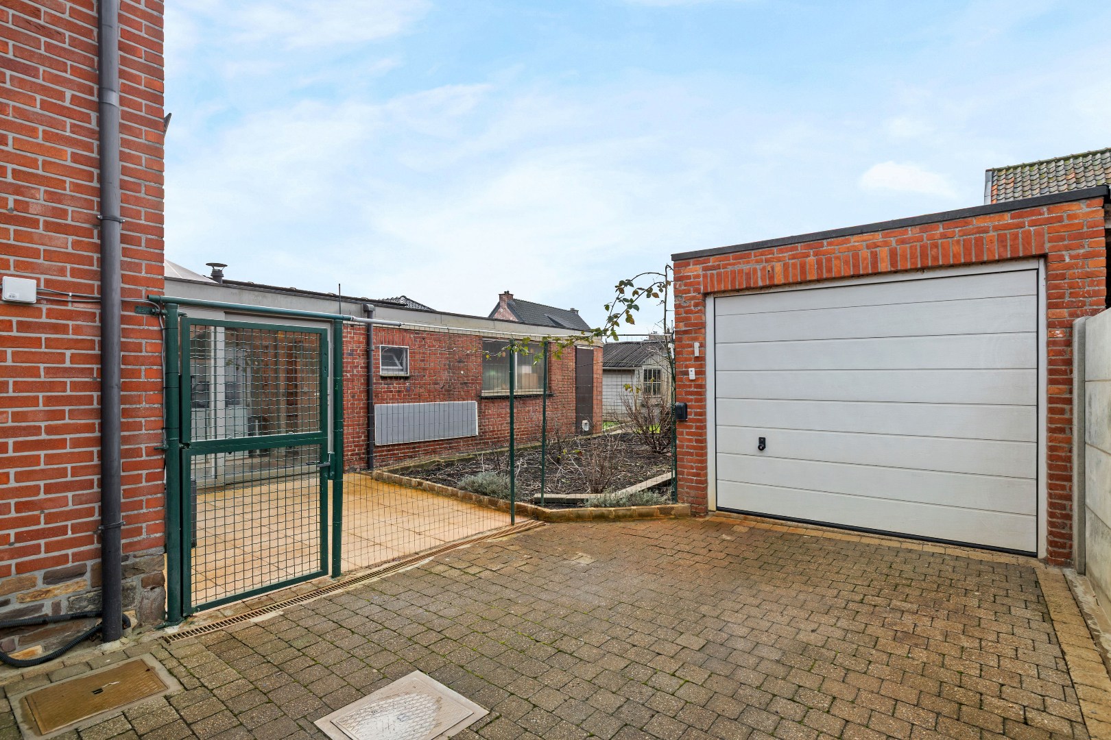 Buiten geniet je van een aangename tuin met terras, perfect om in alle rust te ontspannen. De woning beschikt bovendien over een garage en een oprit, wat zorgt voor voldoende parkeergelegenheid.