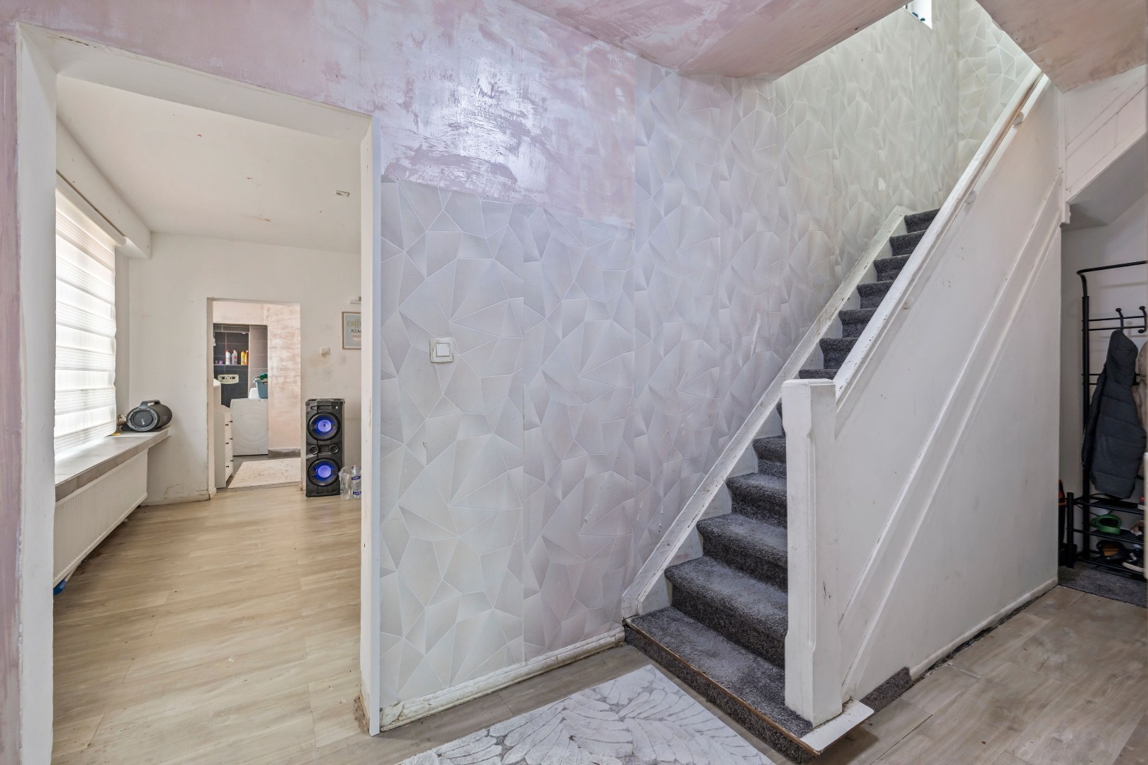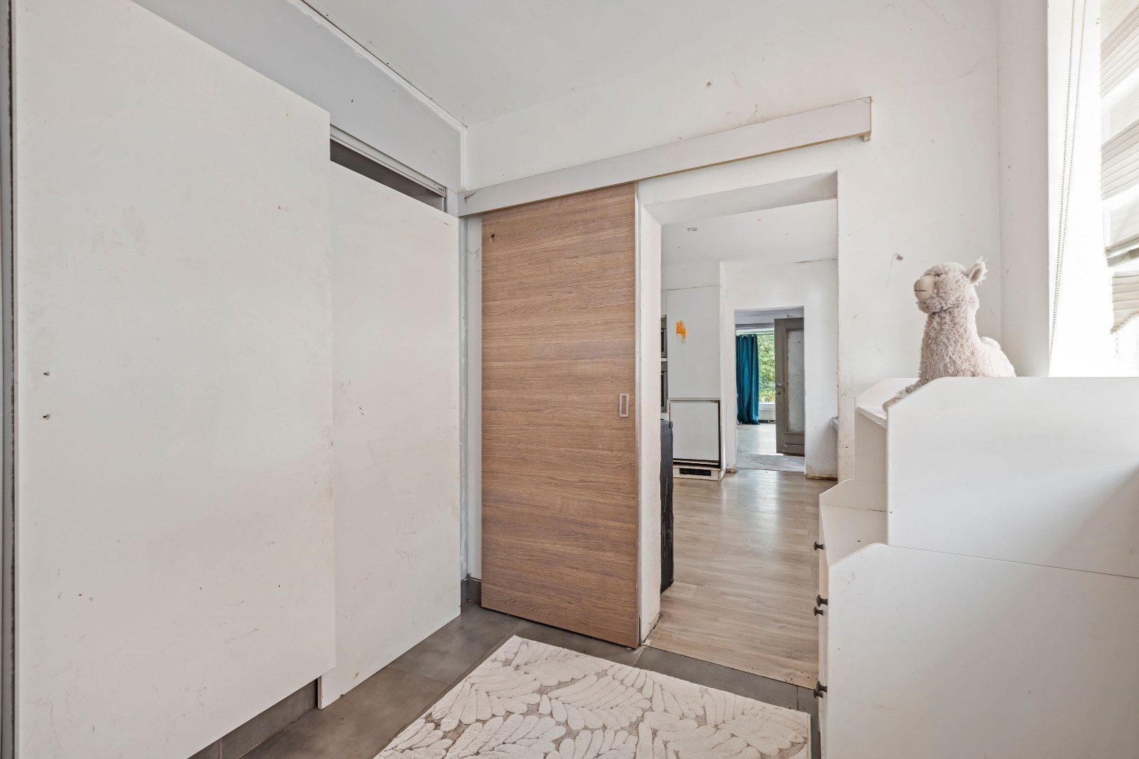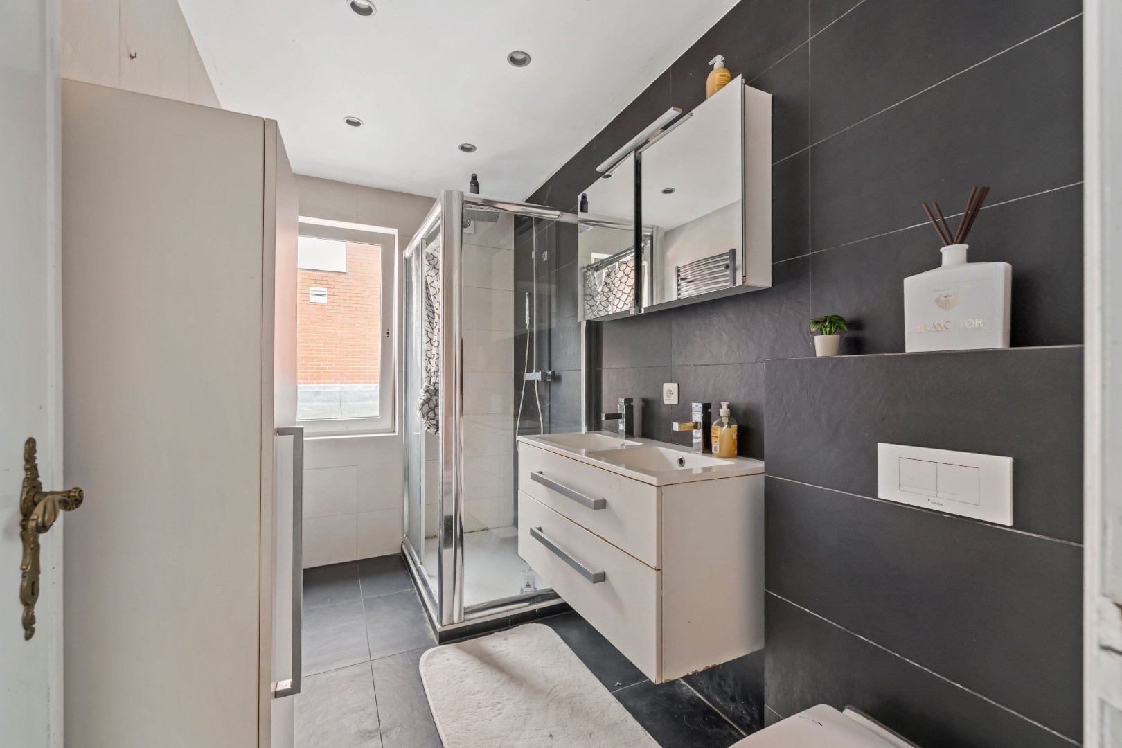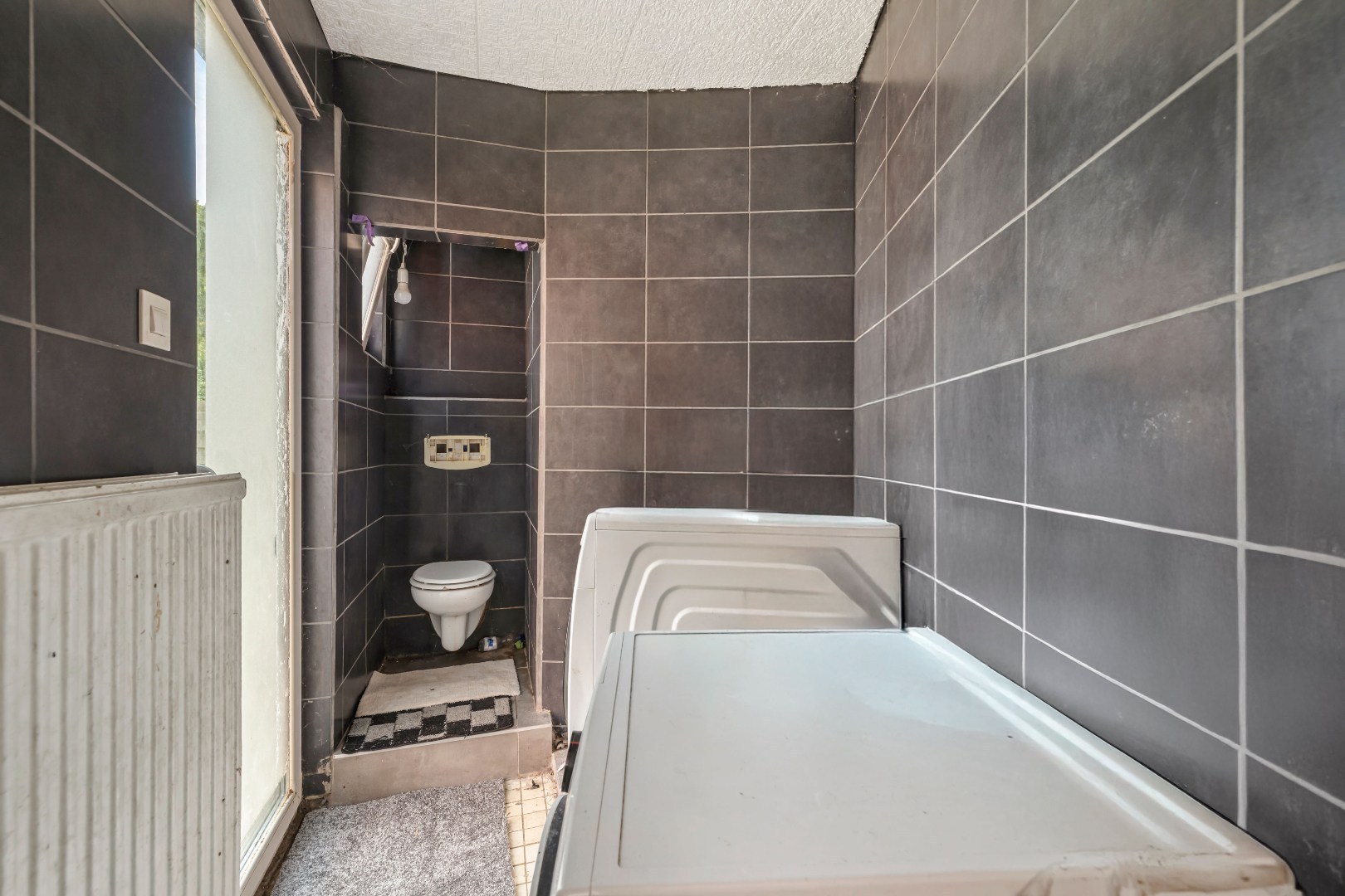 Bij binnenkomst stap je in de leefruimte, waarna je via de trappenhal verder kan naar de andere ruimtes. Op het gelijkvloers vind je de geïnstalleerde keuken, een praktische berging met aansluiting voor wasmachine en een aparte toilet.