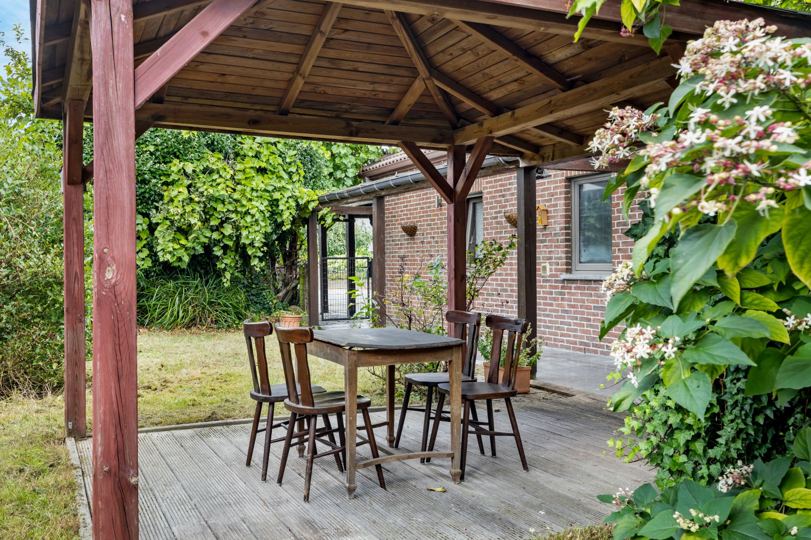 Bovendien is de woning omgeven door een groene en ruime tuin, waar u kunt genieten van de buitenlucht en de privacy.