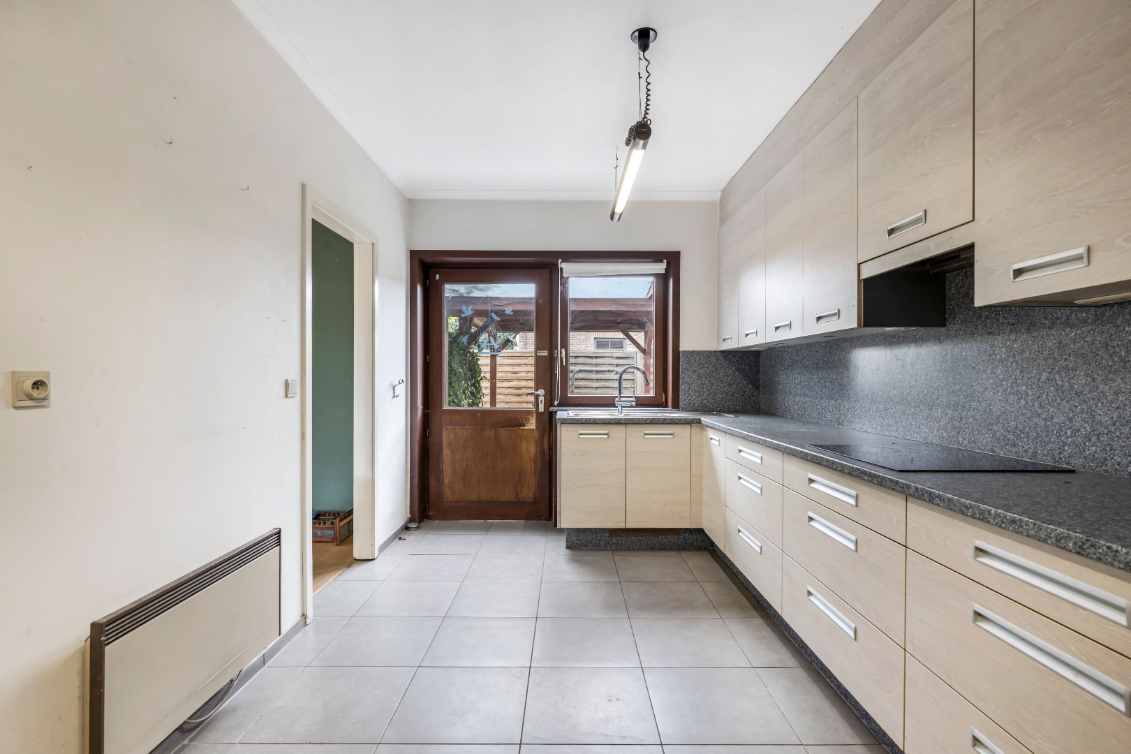 Bij het betreden van de woning komt u binnen in de inkomhal die voorzien is van een gastentoilet. . Verder komt u binnen in een gezellige leefruimte met een houtkachel, perfect voor de gezellige avonden. De keuken is functioneel en biedt veel mogelijkheden voor aanpassingen naar uw smaak. De aangrenzende veranda zorgt voor een heerlijke plek om te ontspannen en te genieten van het groene uitzicht op de tuin.
