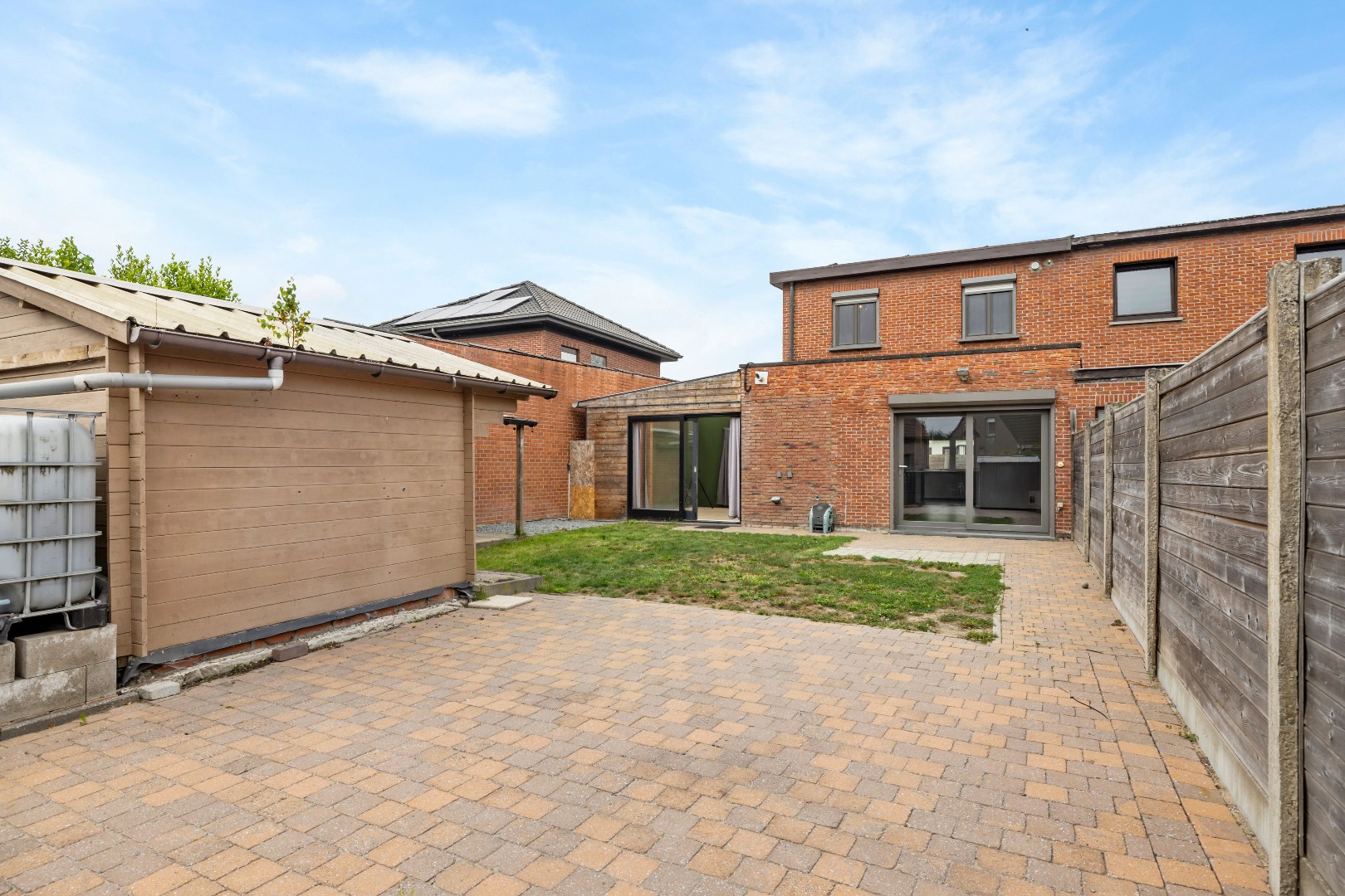 Buiten treft u zowel een voortuin als een zonnige achtertuin met terras, volledig omheind en onderhoudsvriendelijk. Uniek is dat de woning zowel voor- als achteraan een oprit biedt, bereikbaar via twee straten – ideaal voor vlotte toegang en meerdere parkeerplaatsen.