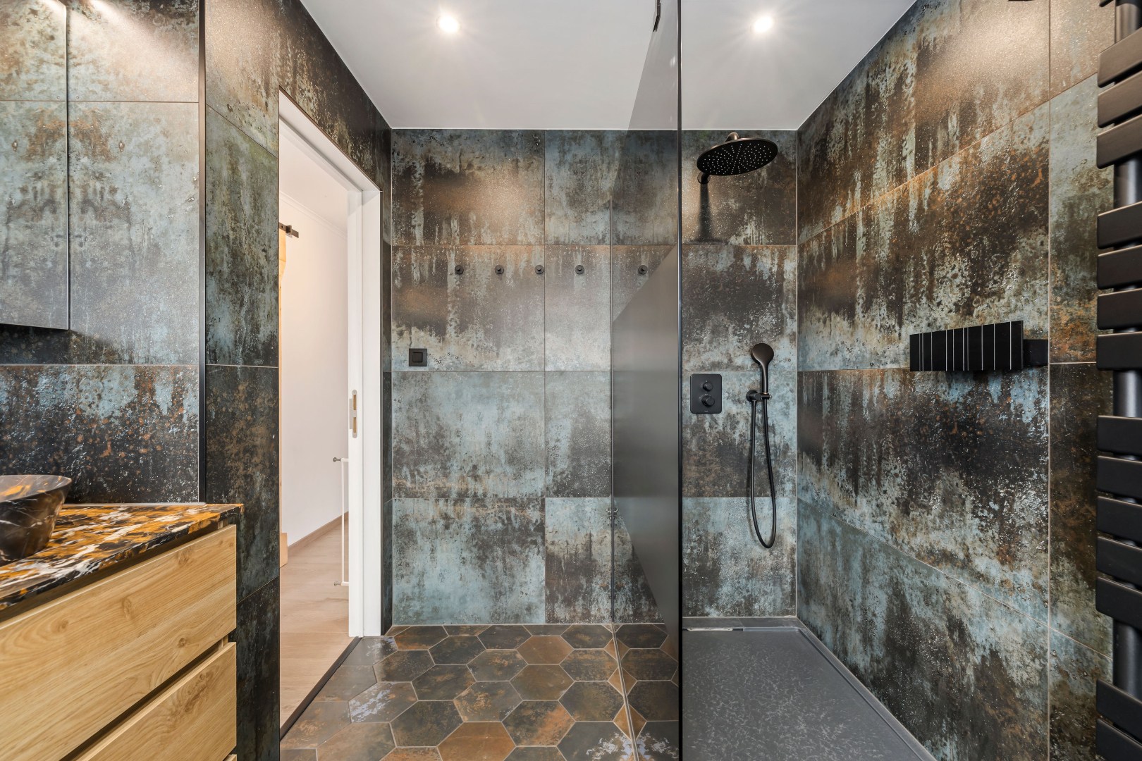 Op de eerste verdieping bevinden zich drie comfortabele slaapkamers en een recent vernieuwde badkamer uitgerust met inloopdouche, tweede toilet en lavabo. De woning is voorzien van dubbele beglazing en centrale verwarming op aardgas, wat zorgt voor extra wooncomfort.