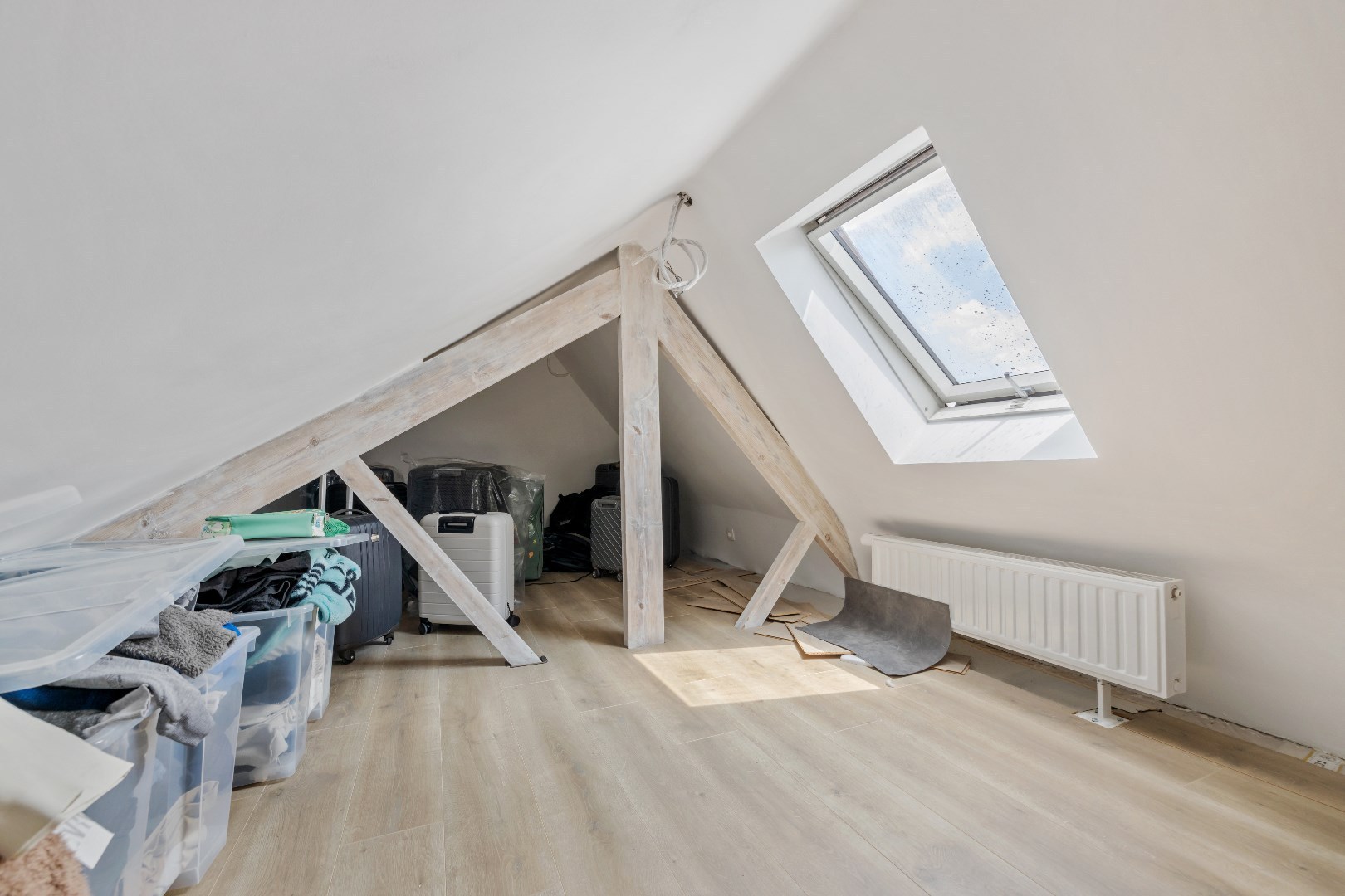 De woning beschikt over een ruime leefruimte met veel lichtinval, een open en moderne keuken en twee badkamers, waarvan één nog naar eigen smaak kan worden afgewerkt. Verder is er op het gelijkvloers een bureau of praktijkruimte, inpandige garage, veranda, apart toilet en een droge kelder van 46 m². De afgesloten tuin is een extra troef, ideaal voor rustige momenten midden in het centrum.