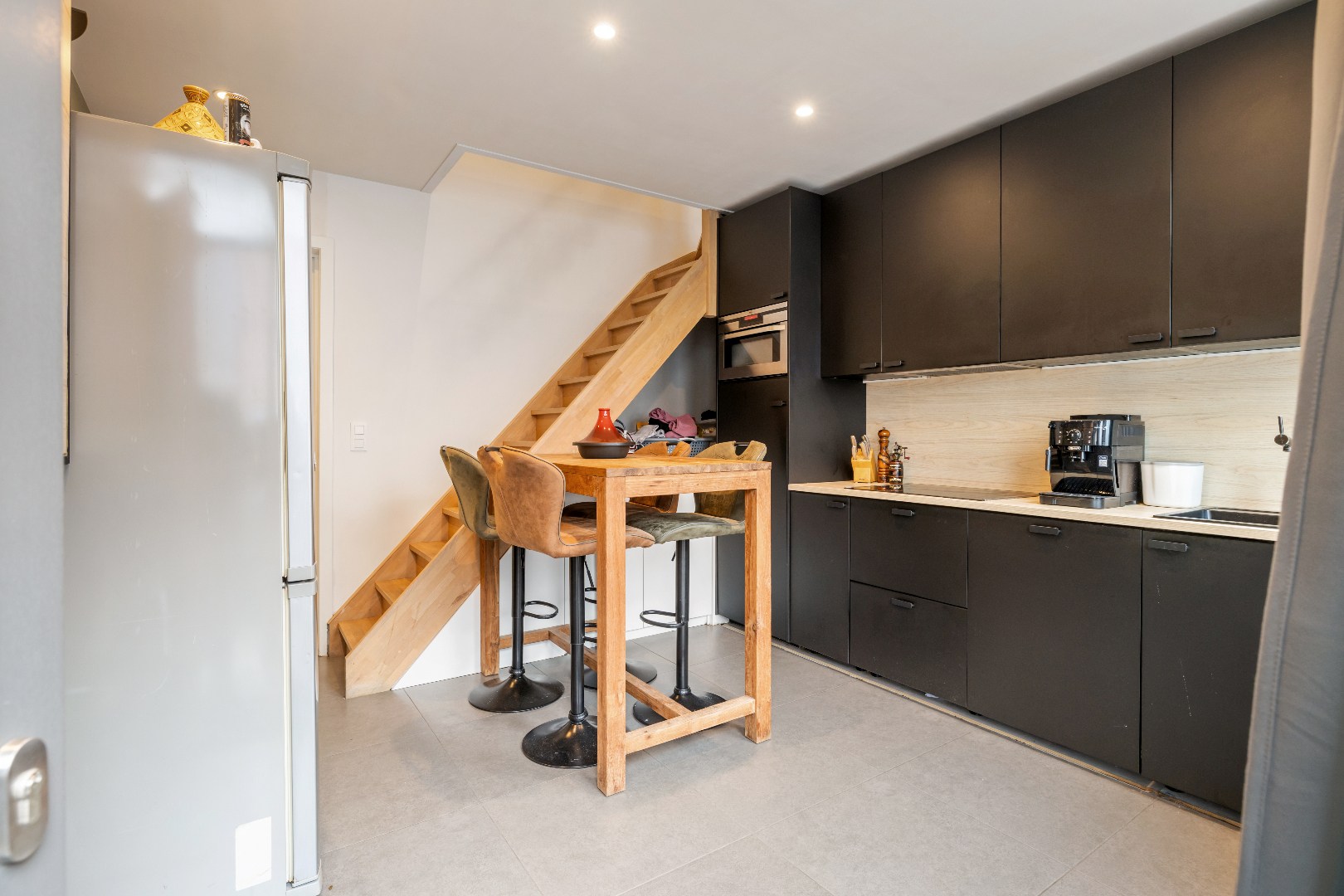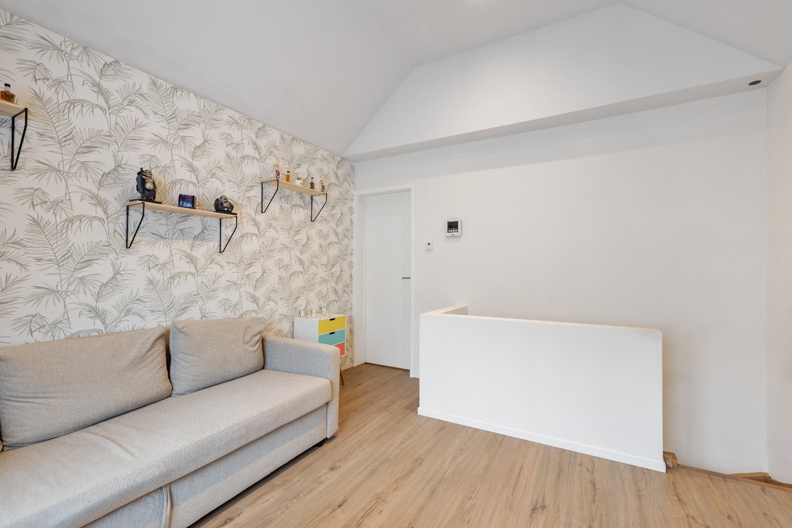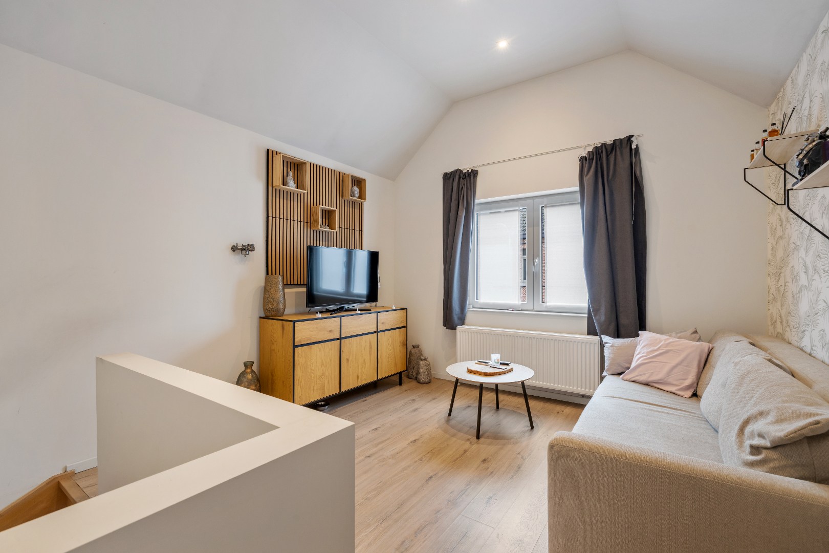 Op de eerste verdieping bevindt zich een gezellige woonkamer met aansluitend de slaapkamer, rustig gelegen aan de achterzijde van de woning. Aansluitend aan de badkamer is er bovendien een aangenaam terras.
