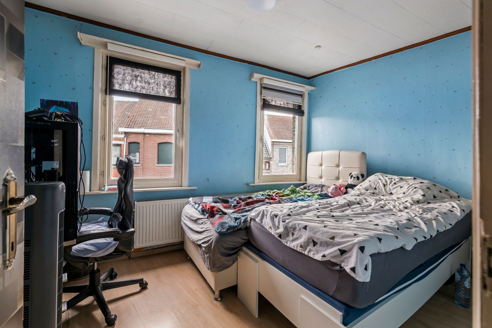 Op de eerste verdieping zijn er twee ruime slaapkamers met rolluiken. De geïsoleerde zolder kan perfect dienen als derde slaapkamer of extra opslagruimte. De woning is uitgerust met een condensatieketel en de elektrische installatie is conform tot 2042. Bovendien is er geen renovatieplicht, wat een belangrijke troef is.