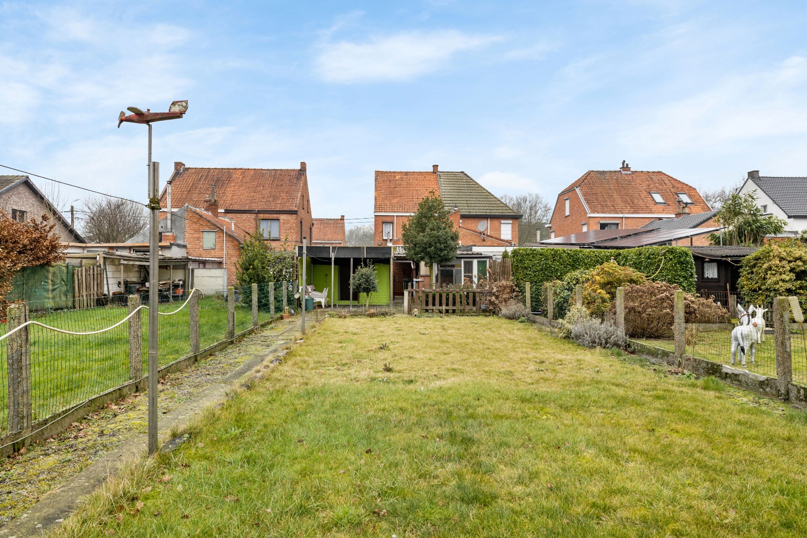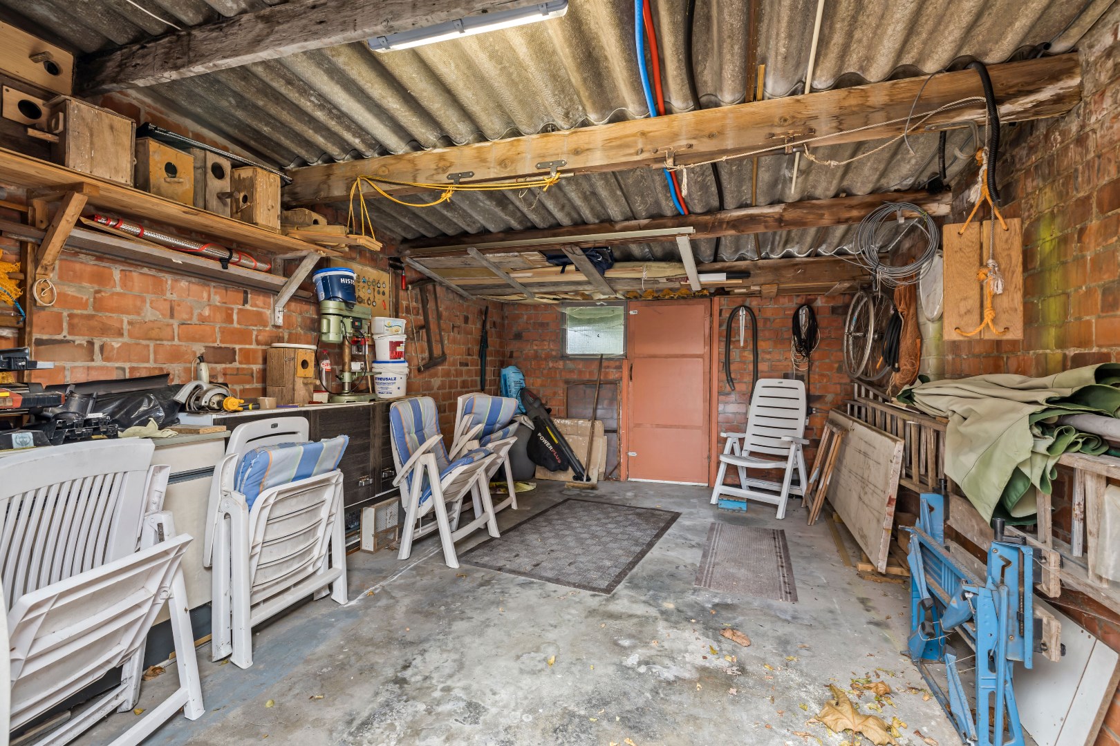 Verder beschikt de woning over een ruime garage met een lange oprit en een grote tuin, ideaal voor wie van buitenruimte houdt. De woning heeft een solide betonstructuur en wordt verwarmd met centrale verwarming op mazout. De helft van de ramen werd al vernieuwd naar hoogrendementsglas.