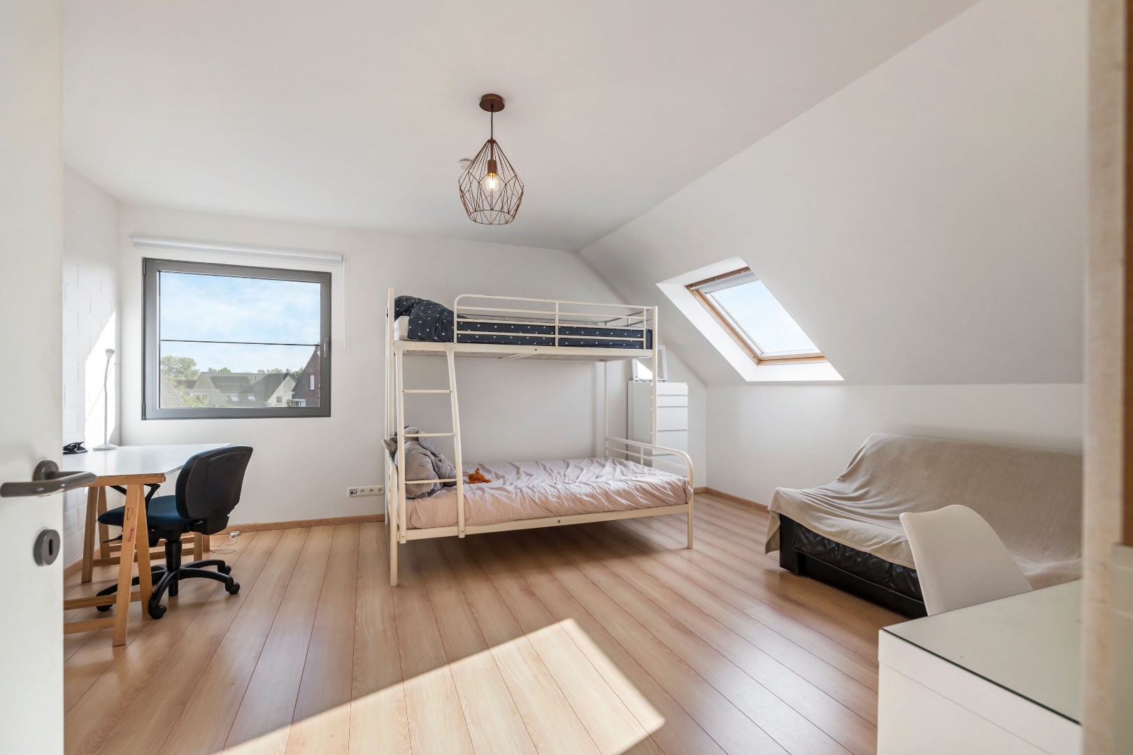 Op de eerste verdieping bevinden zich drie volwaardige slaapkamers, een unieke nachthal en een badkamer uitgerust met bad, douche en dubbele lavabo. De tweede verdieping biedt een vierde slaapkamer én een extra zolderkamer die perfect kan worden omgevormd tot vijfde slaapkamer of polyvalente ruimte.