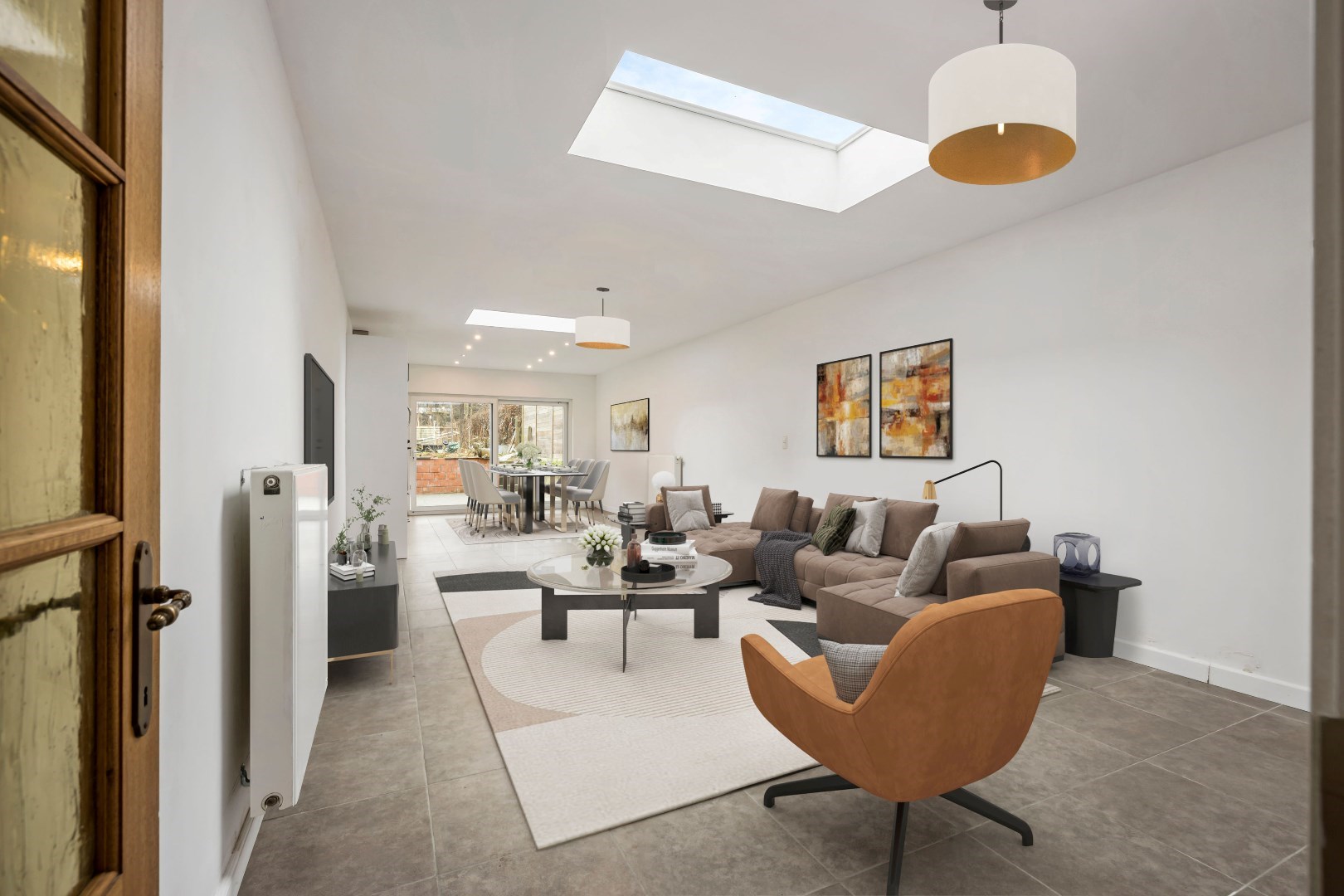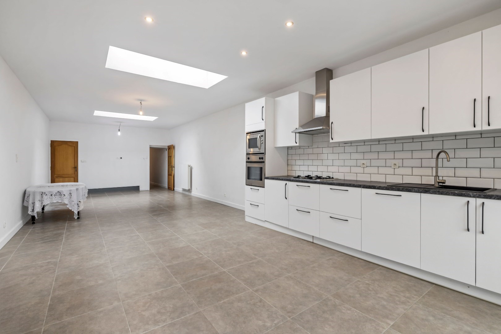 Binnenin vindt u een zeer ruime leefruimte met een open keuken, voorzien van modern comfort, en een badkamer op het gelijkvloers met douche en dubbele wastafel. Met de mogelijkheid tot 4 slaapkamers, of 3 slaapkamers en een praktische bureauruimte, biedt deze woning meer dan voldoende flexibiliteit voor uw gezin of thuiswerkbehoeften.