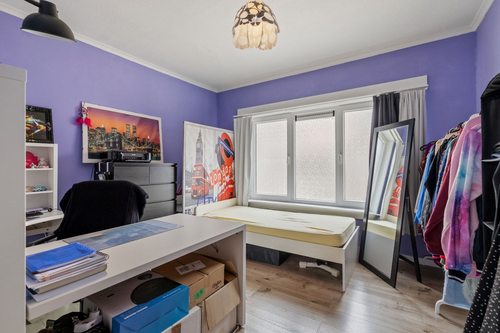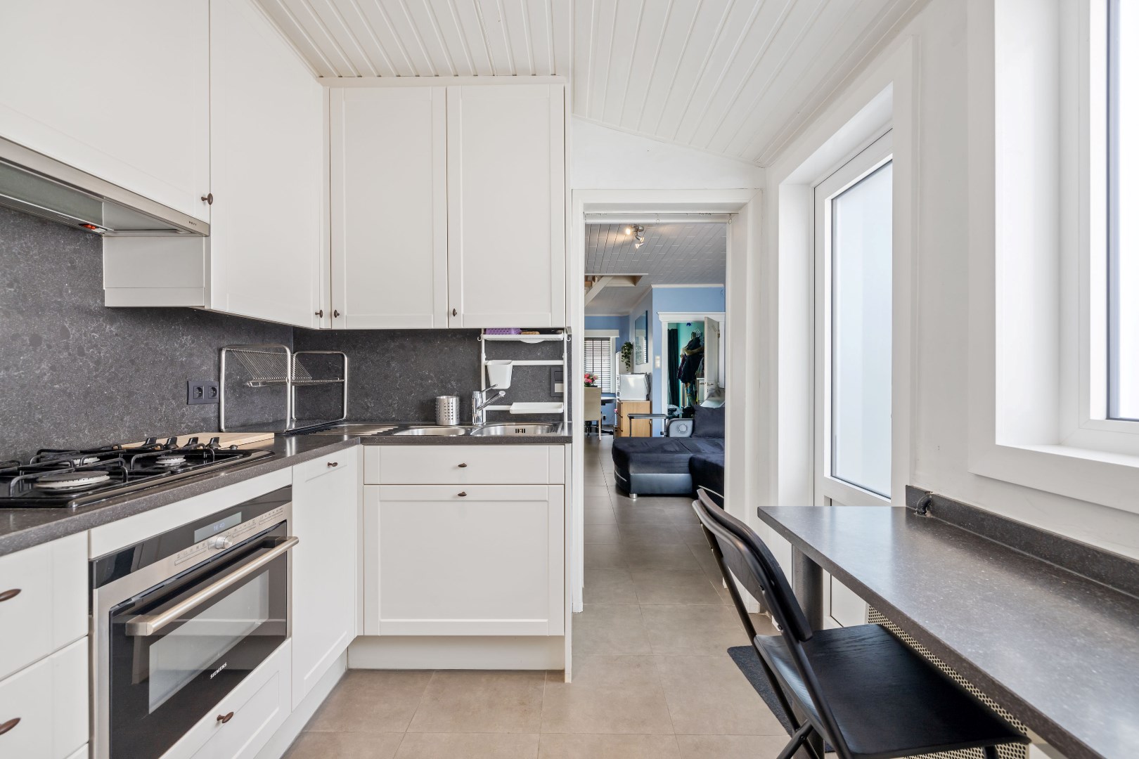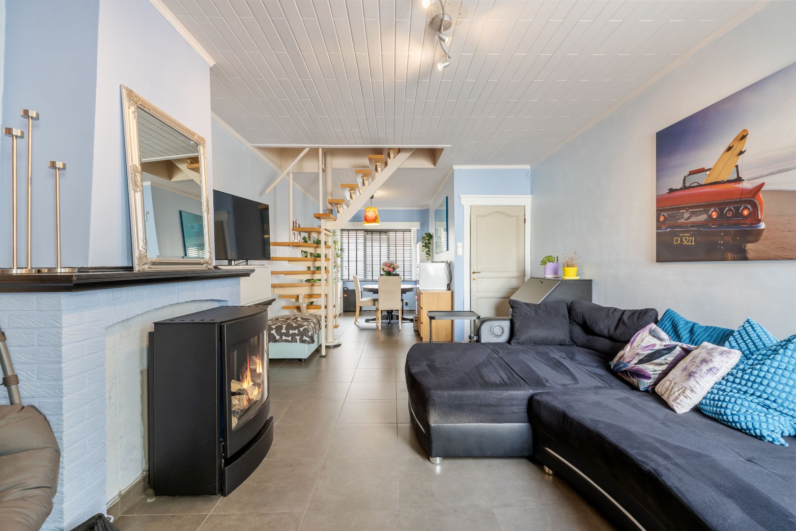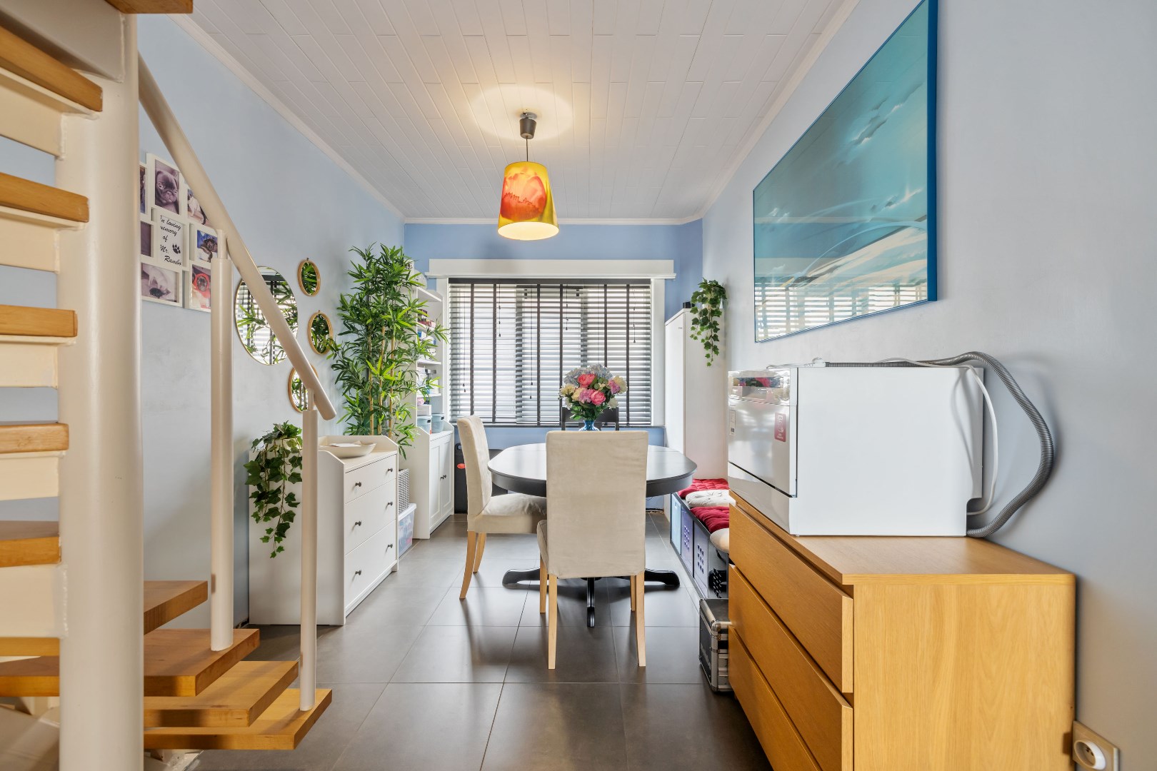 De ligging is een belangrijke troef: rustig maar toch dicht bij winkels, scholen en openbaar vervoer. De woning baadt in het natuurlijke licht dankzij de grote raampartijen.