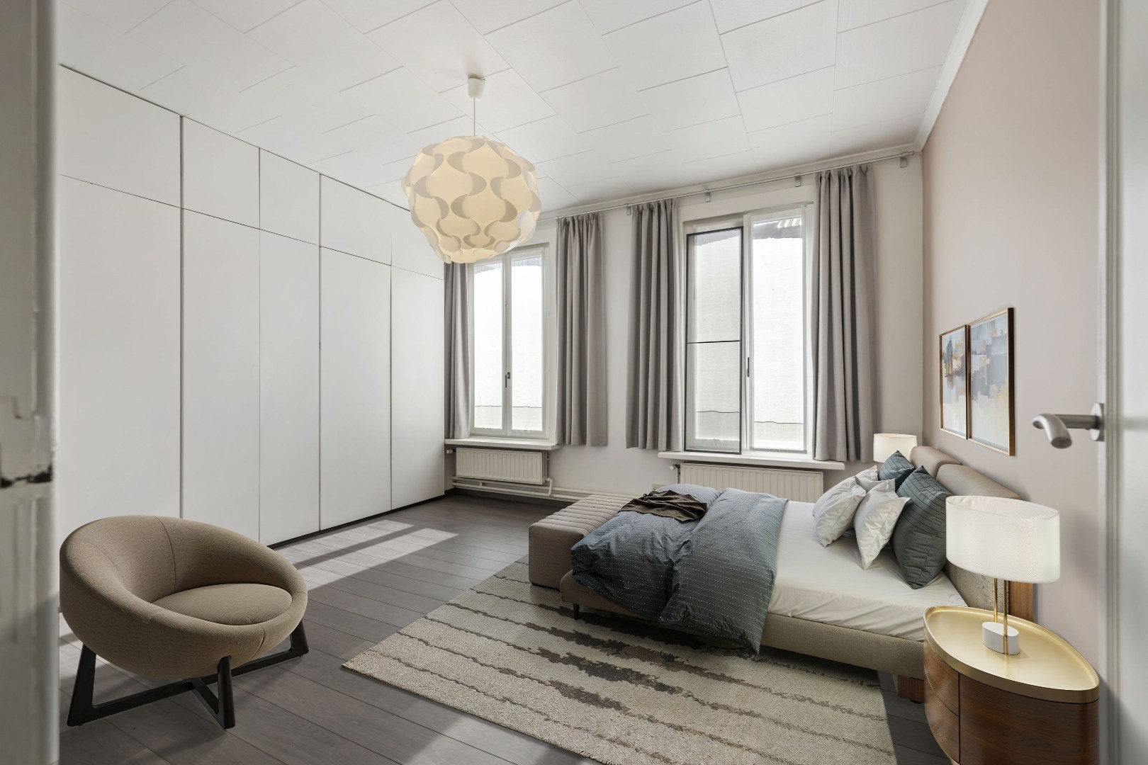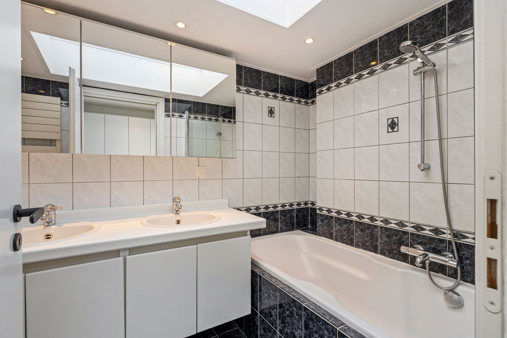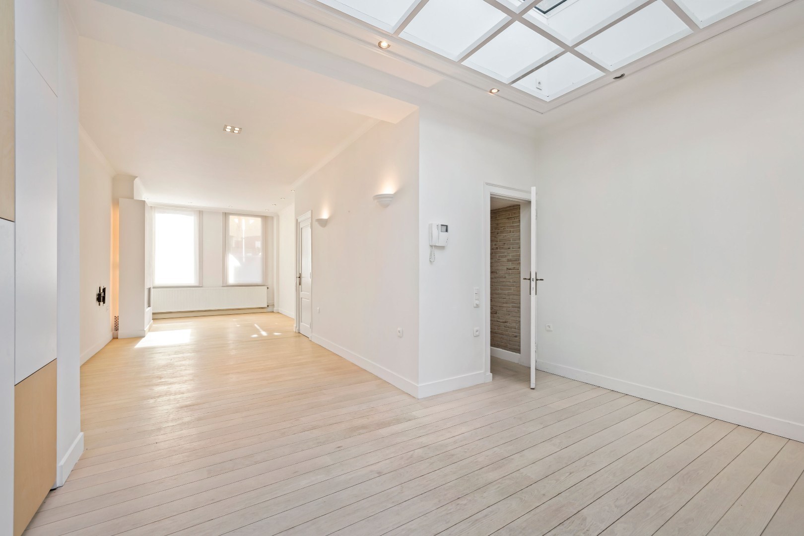 Binnen valt meteen de lichtinval op, versterkt door een stijlvolle lichtstraat en grote ramen met dubbele beglazing. De woning beschikt over drie zeer ruime slaapkamers, voorzien van ingemaakte kasten. Twee volledig uitgeruste badkamers vervolledigen het geheel: één met ligbad en één met douche. Daarnaast zijn er drie afzonderlijke toiletten en een aparte wasplaats.