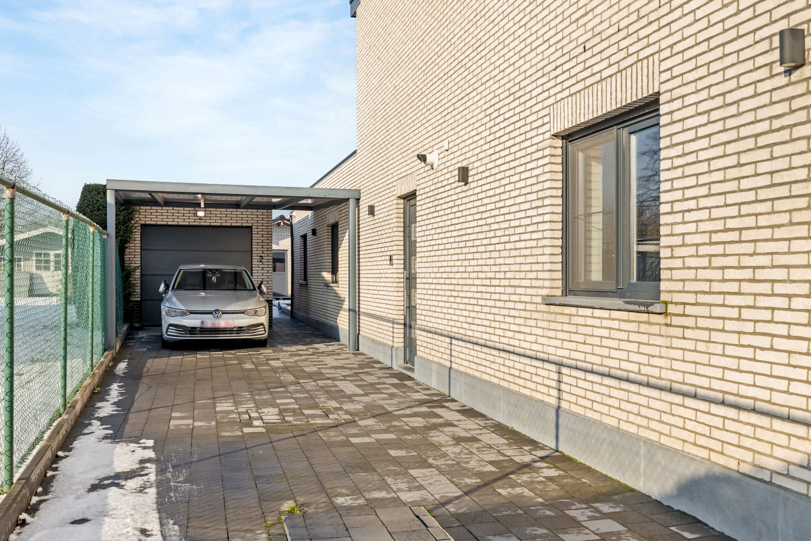 Extra troeven zijn de betonnen structuur tot in de zolder, een mega praktische garage met dubbele poort (doorrijdbaar tot aan de tuinberging), een carport en parkeergelegenheid voor vier wagens. Driefasige elektriciteit is aanwezig.
