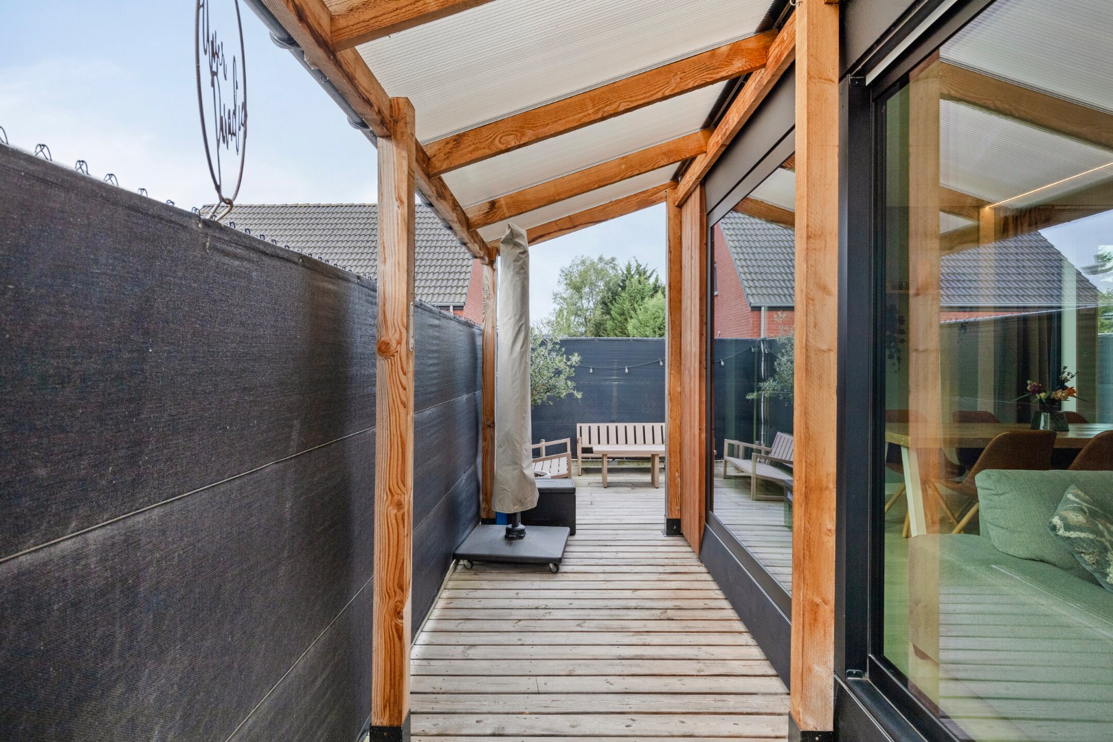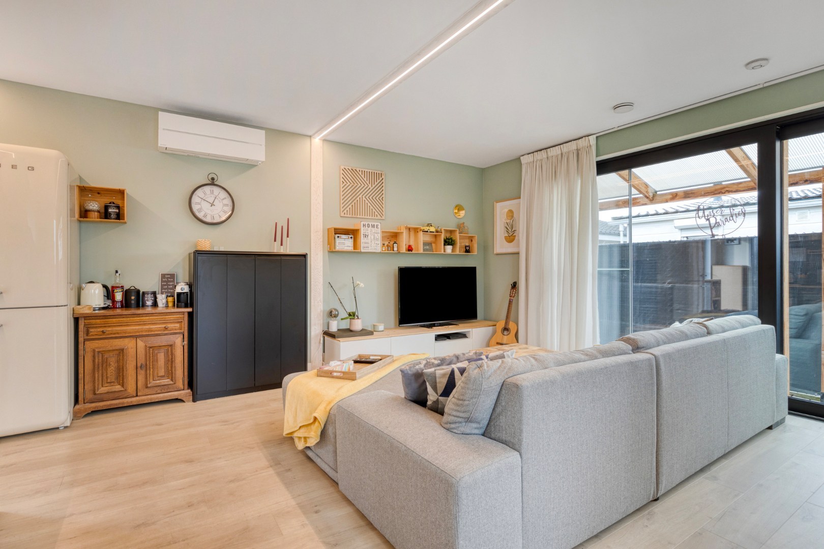 Deze woonst is voorzien van alle energetisch comfort, ventilatie systeem D, warmte pomp, airco en regenwaterput. Als kers op de taart beschikt deze parel nog over een gezellig terras en een oprit.
