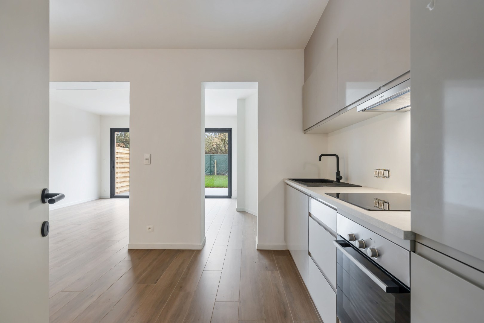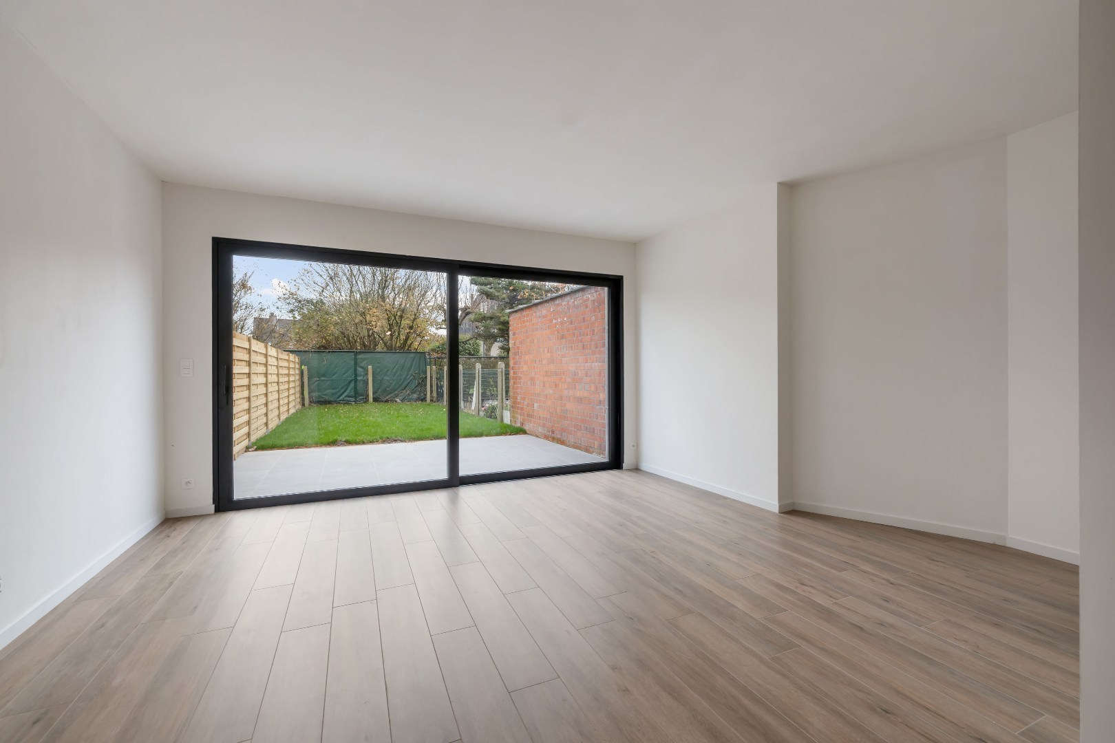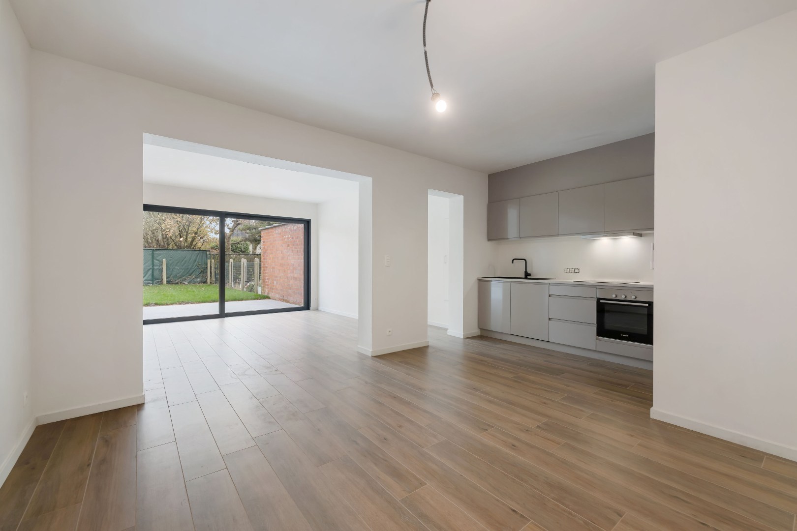 Binnenin valt meteen de lichte leefruimte op, met een grote raampartij die uitkijkt op de aangelegde tuin. De ingerichte keuken sluit hier mooi op aan en vormt een gezellige thuisbasis voor kook- en leefmomenten. Verder zijn er twee aparte toiletten en heel wat praktische bergruimte, inclusief een handige plek voor fietsen.