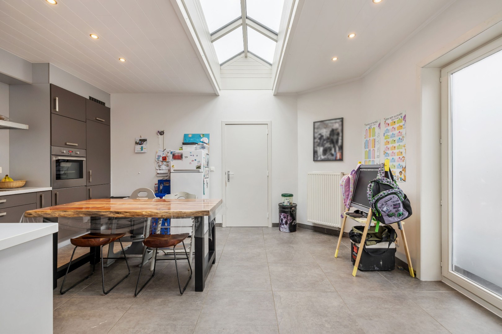 Op het gelijkvloers kom je binnen in een ruime leefruimte, die vlot aansluit op de keuken. Aansluitend vind je de badkamer met ligbad en douche, en een apart gastentoilet.