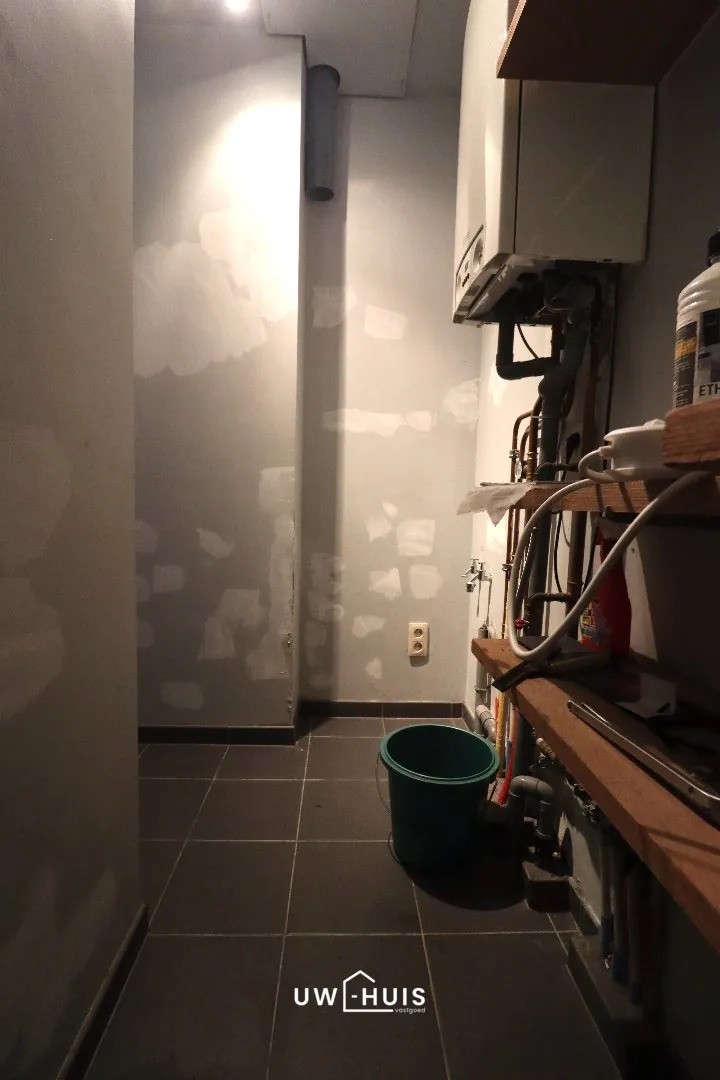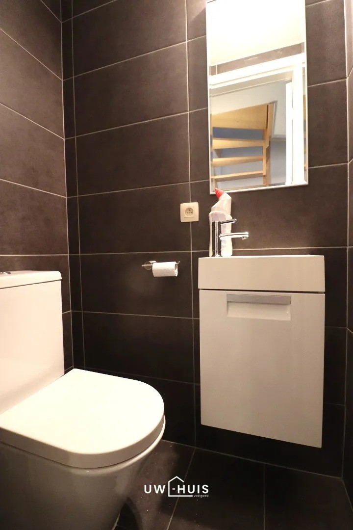 Indeling: inkomhal met gastentoilet. Lichtrijke leefruimte met open keuken en aansluitend een gezellig terras. Berging met aansluiting voor het wasmachine en de droogkast. Ruime slaapkamer met aansluitend een badkamer die voorzien is van een ligbad en lavabomeubel. Op de bovenste verdieping is er nog een ruime slaapkamer die kan ingedeeld worden in twee kleinere slaapkamers. Tweede badkamer met inloopdouche, lavabomeubel én toilet. Tevens is er nog een technische berging voorzien op de bovenste verdieping (aansluitend aan de badkamer).