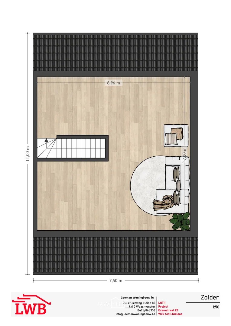 De indeling voorziet een open en lichtrijke leefruimte met keuken, gericht op de tuin. Een inpandige garage en praktische bergruimte kunnen perfect geïntegreerd worden. Op de verdieping is er plaats voor drie volwaardige slaapkamers en een badkamer. De zolder wordt casco voorzien en kan ingericht worden als extra slaapkamer, bureau of hobbyruimte.